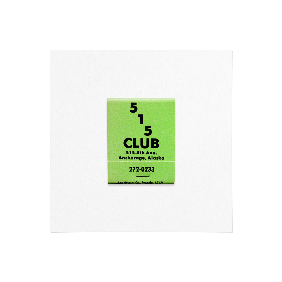 A high-quality art print of a vintage 1970s matchbook from the 515 Club, a longtime bar and lounge that once operated at 515 Fourth Avenue in downtown Anchorage, Alaska.
