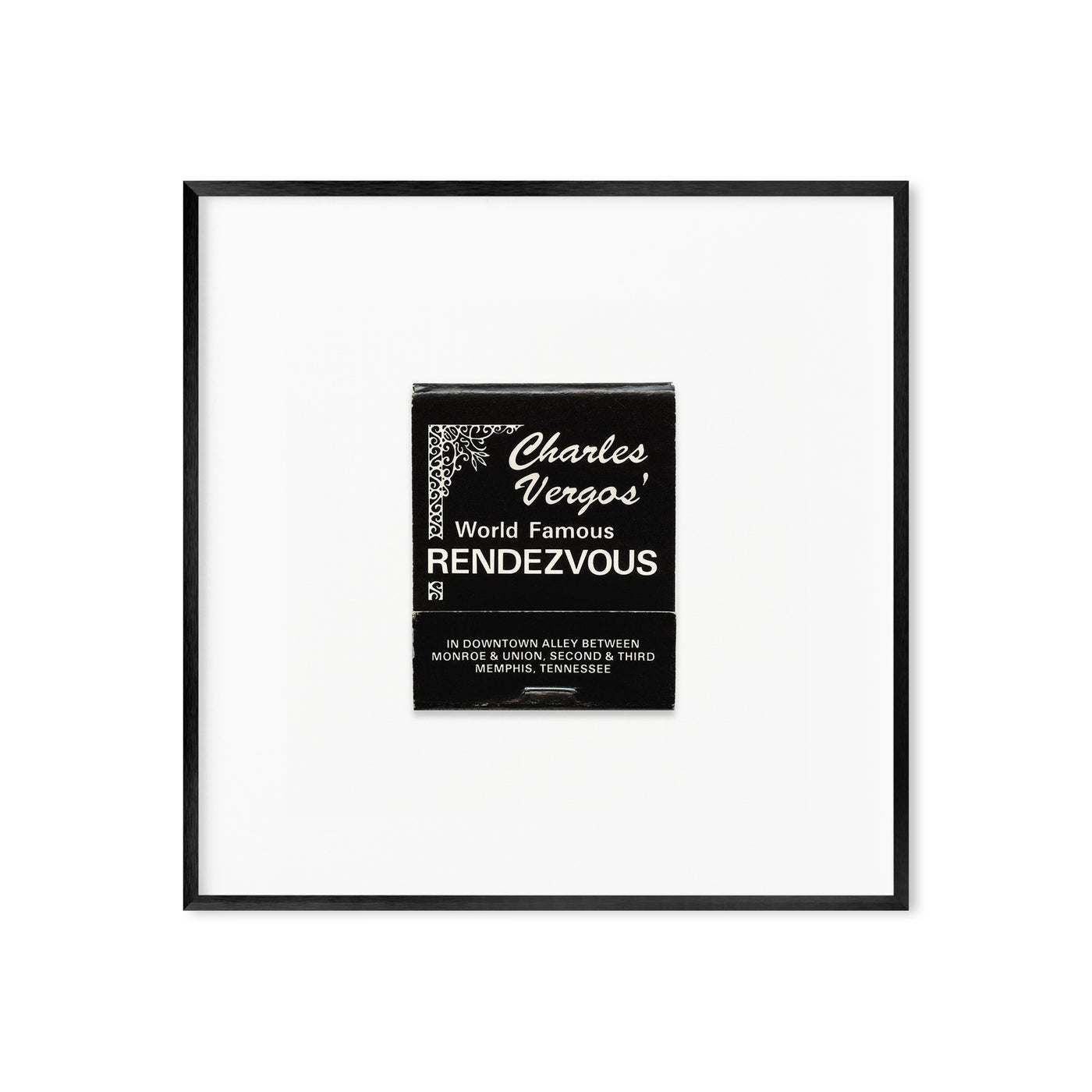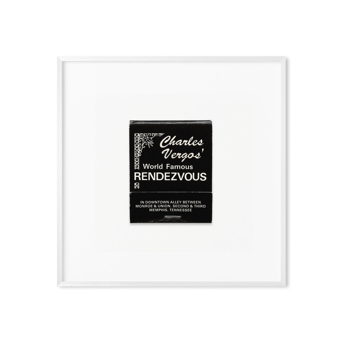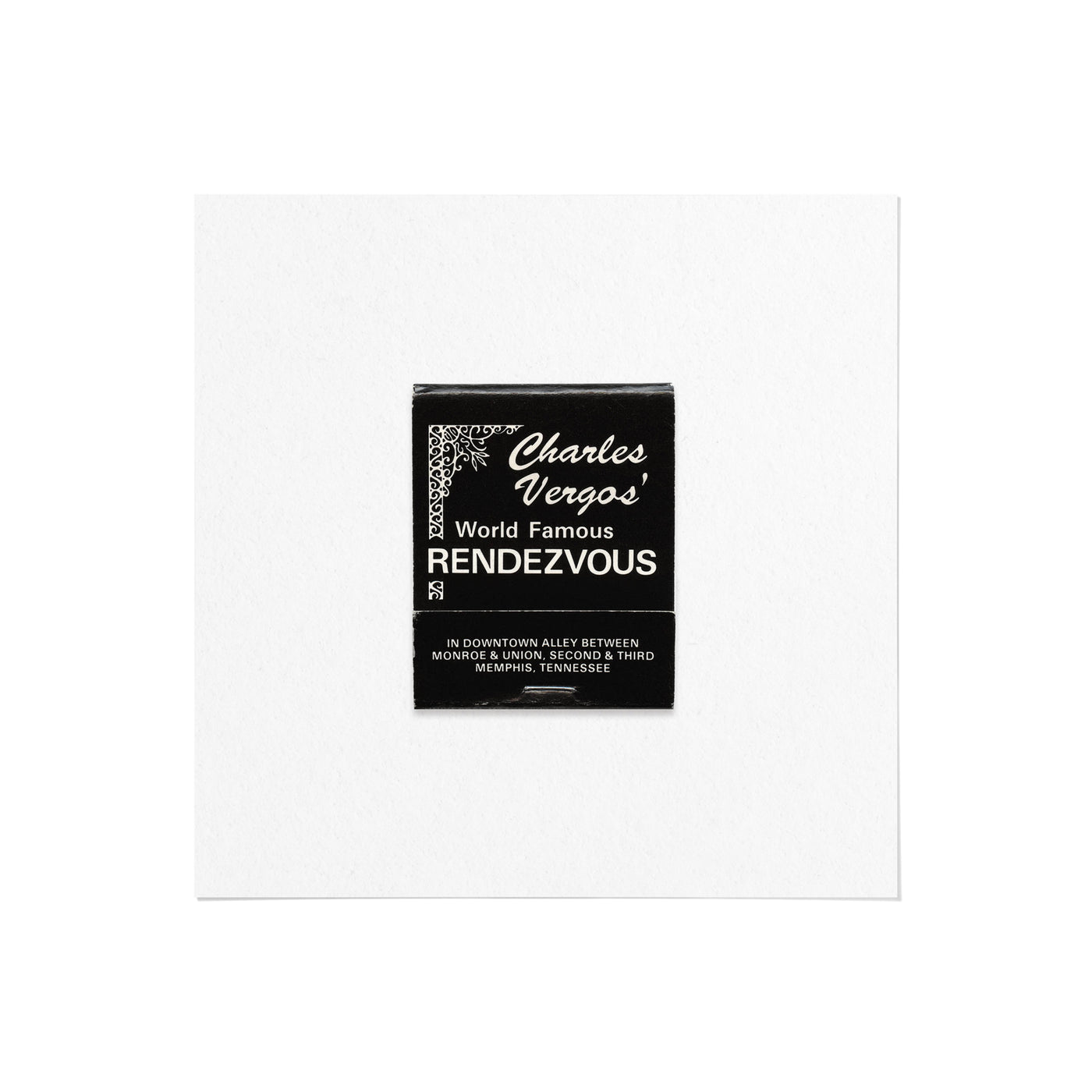 A high-quality art print of a vintage 1980s matchbook from Charles Vergos’ Rendezvous, the legendary Memphis, Tennessee barbecue joint.
