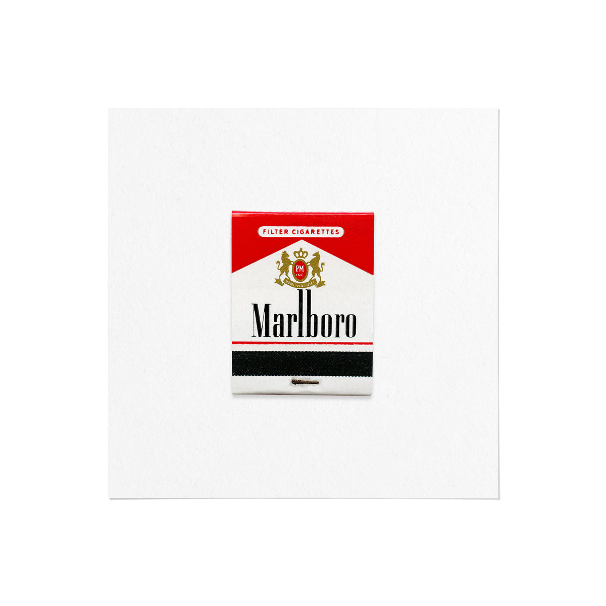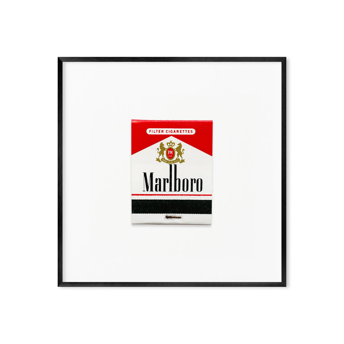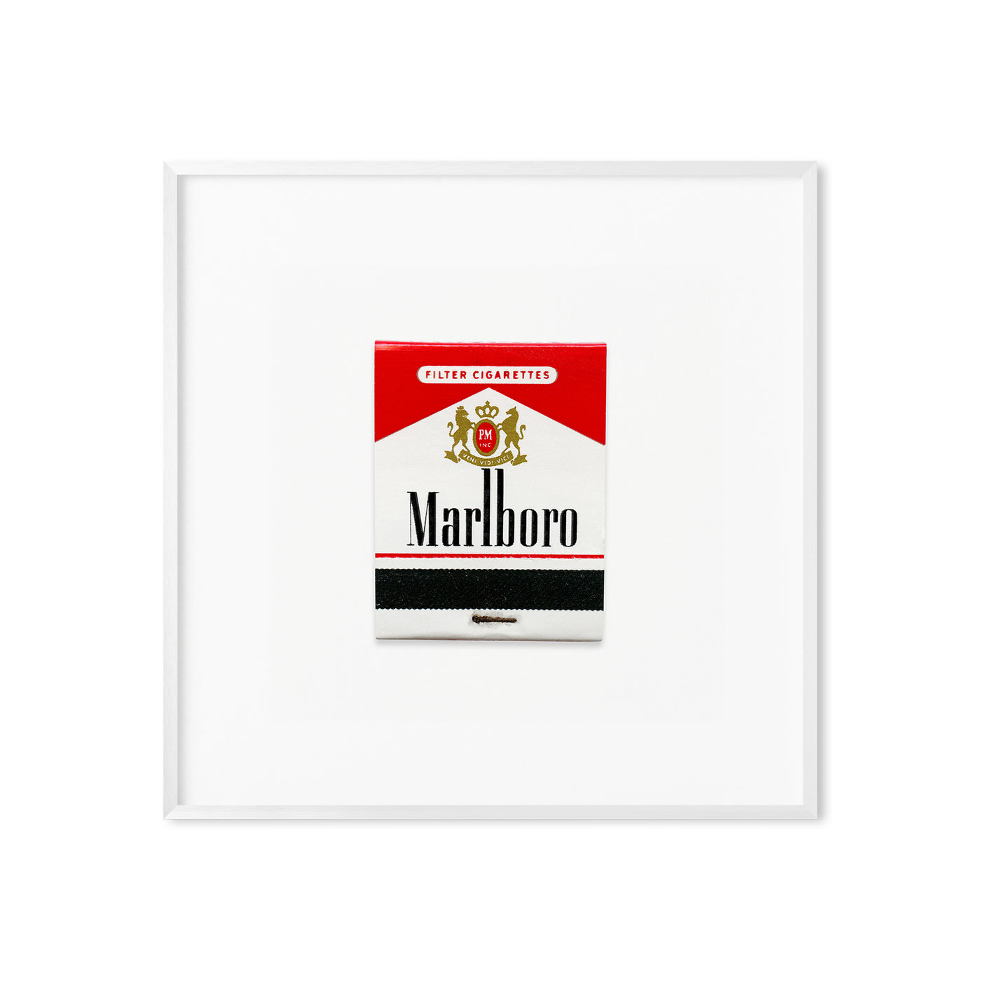 A high-quality art print of a vintage 1960s Marlboro Red matchbook, featuring the iconic packaging design that became a symbol of American advertising and pop culture during the golden age of tobacco marketing.