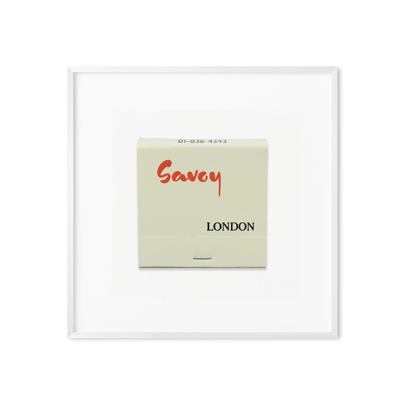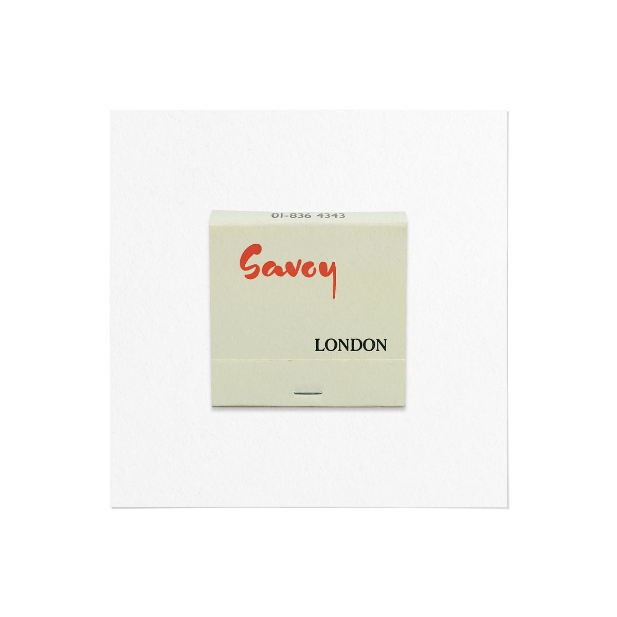 A high-quality art print of a vintage 1980s matchbook from the Savoy Hotel, a luxury hotel located in the Strand in London, England.