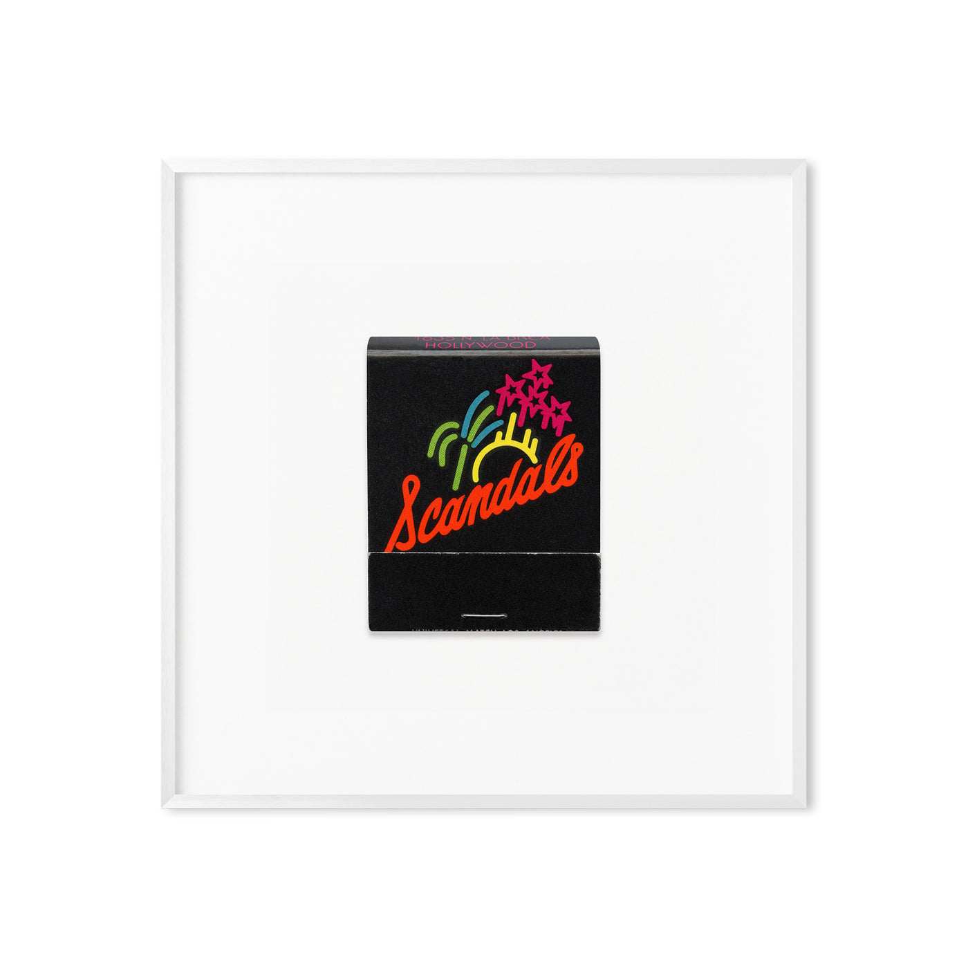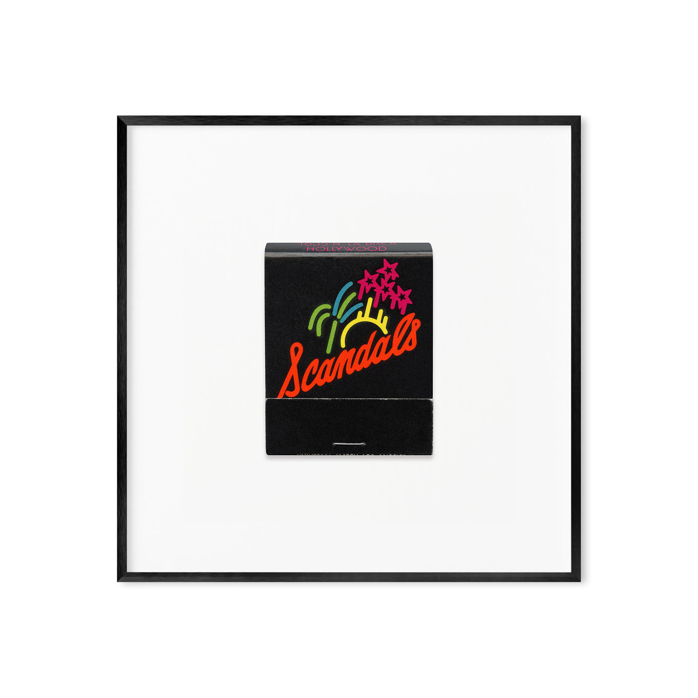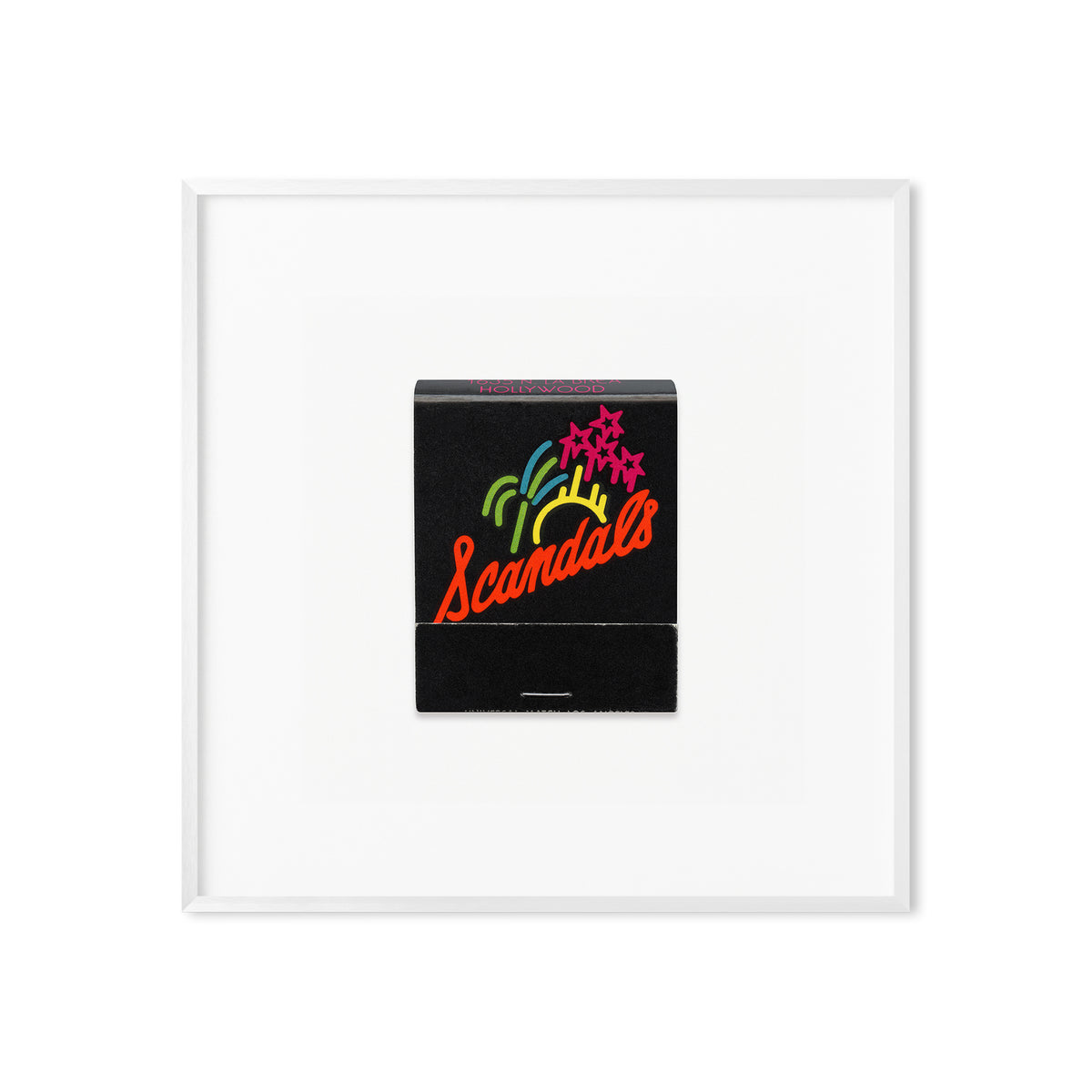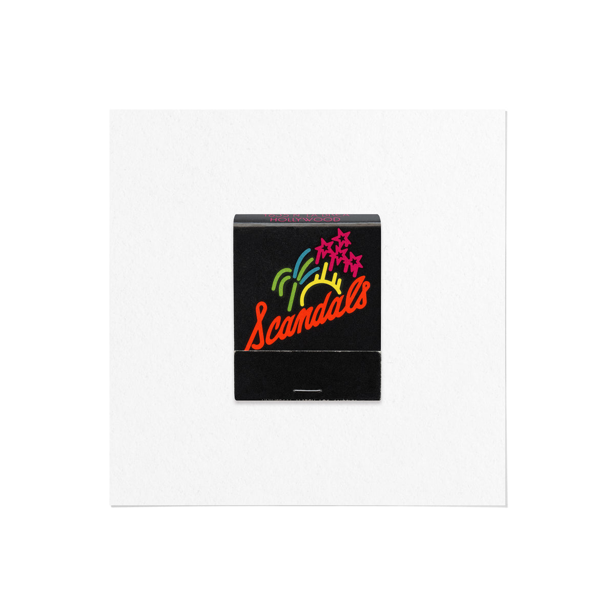 A high-quality art print of a vintage 1970s matchbook from Scandals, a short-lived nightclub once located at 1635 North La Brea Avenue in Hollywood, California.