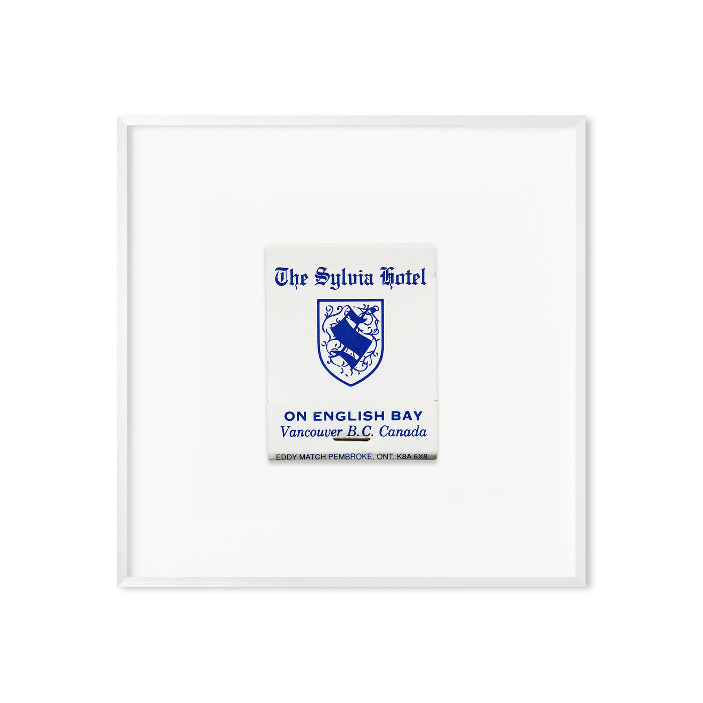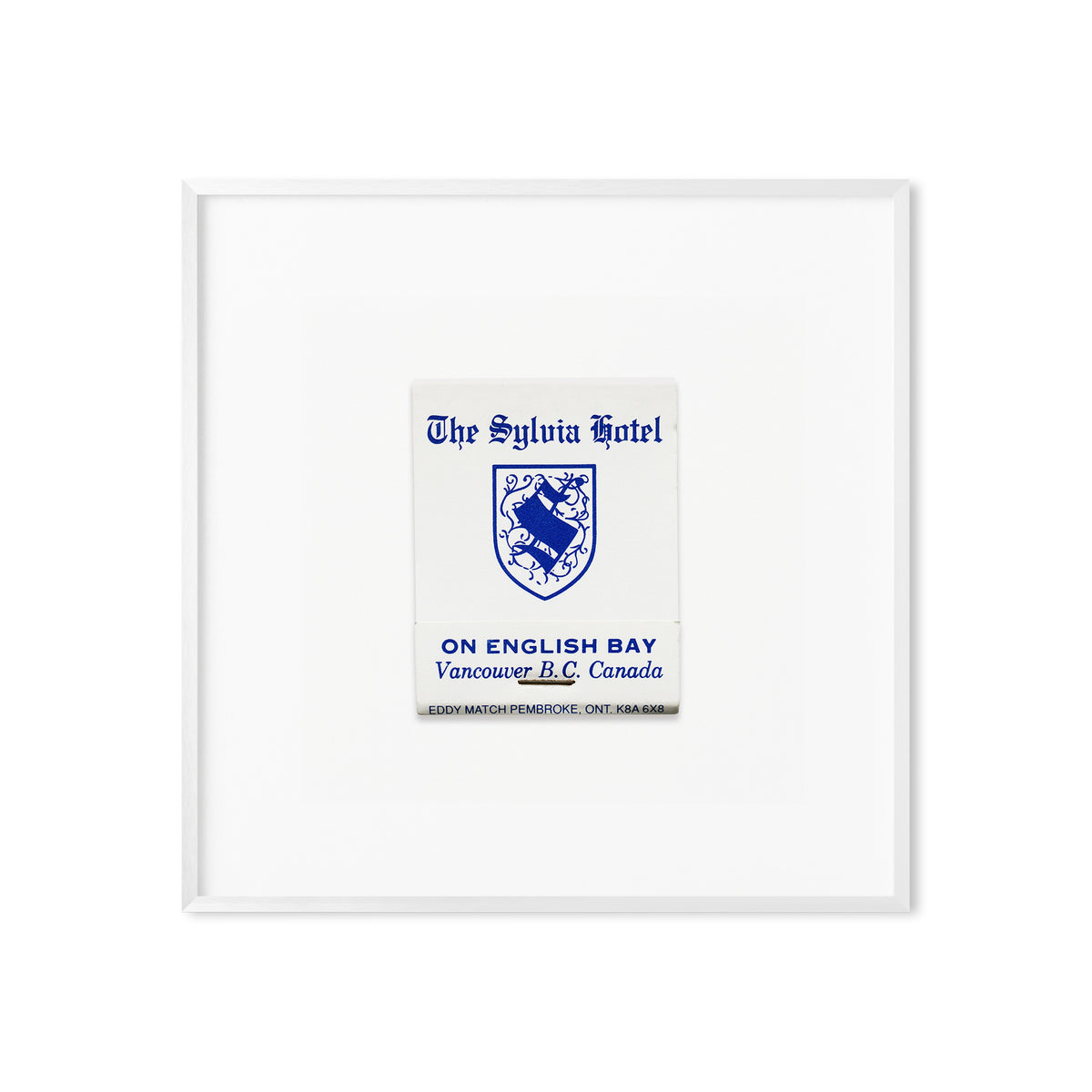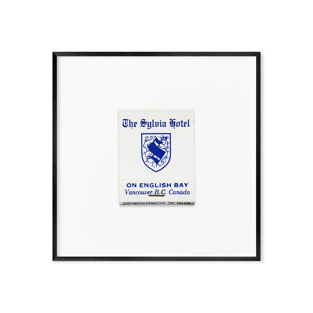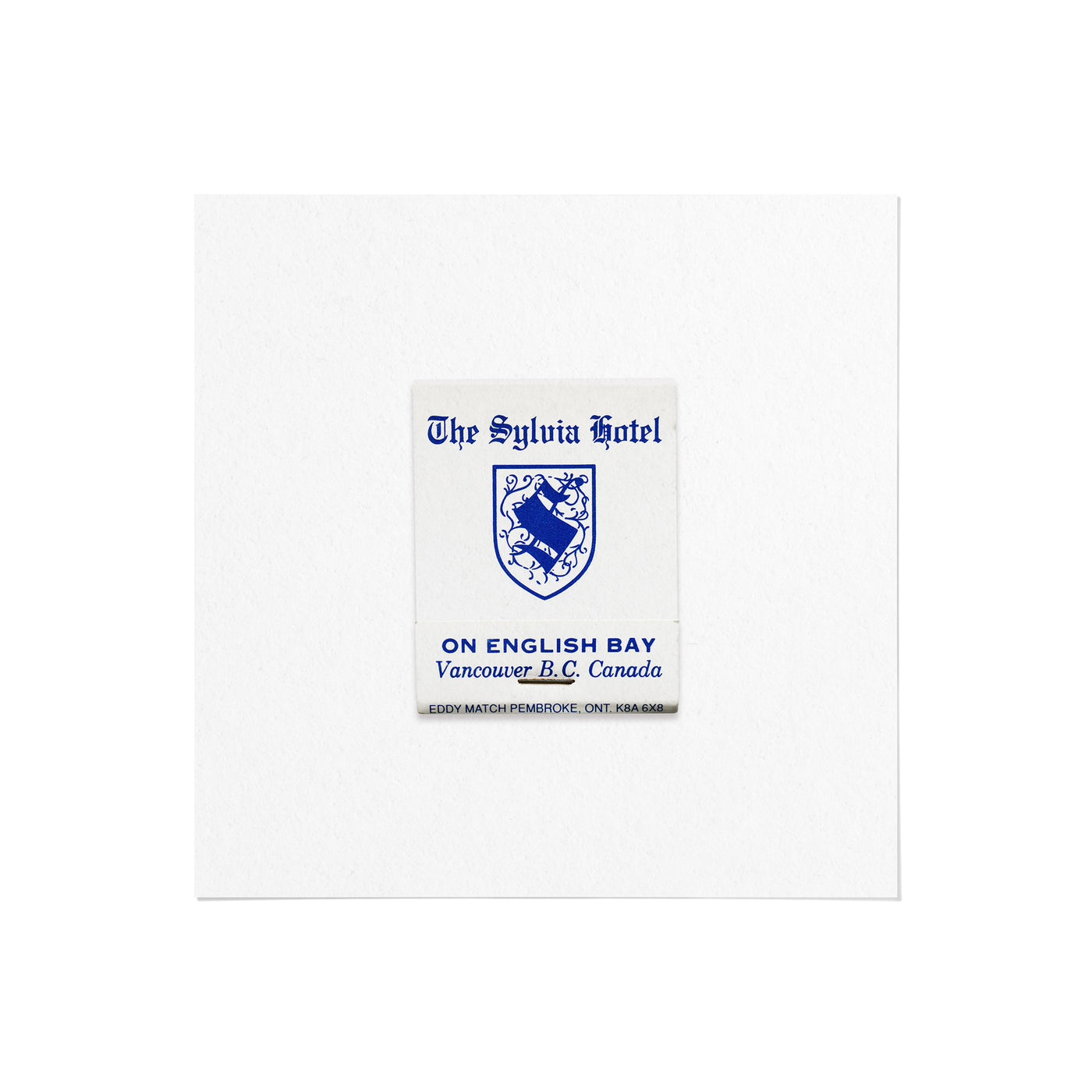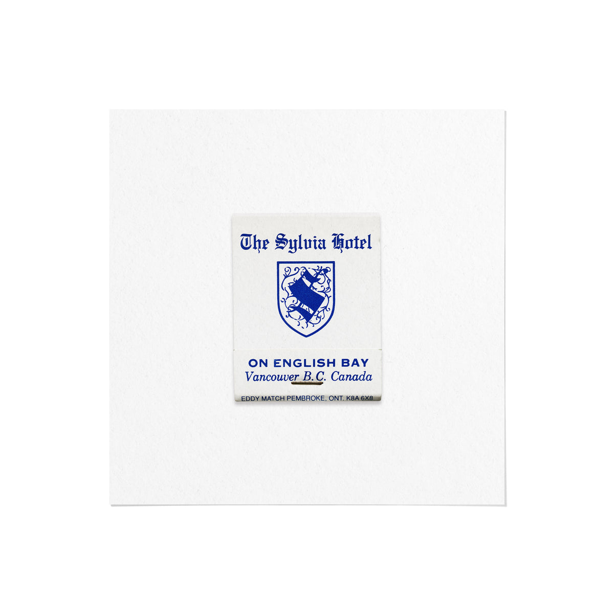 A high-quality art print of a vintage 1970s matchbook from the Sylvia Hotel, a cherished landmark nestled on English Bay in Vancouver, British Columbia.