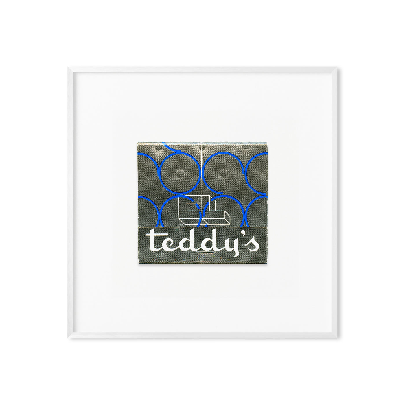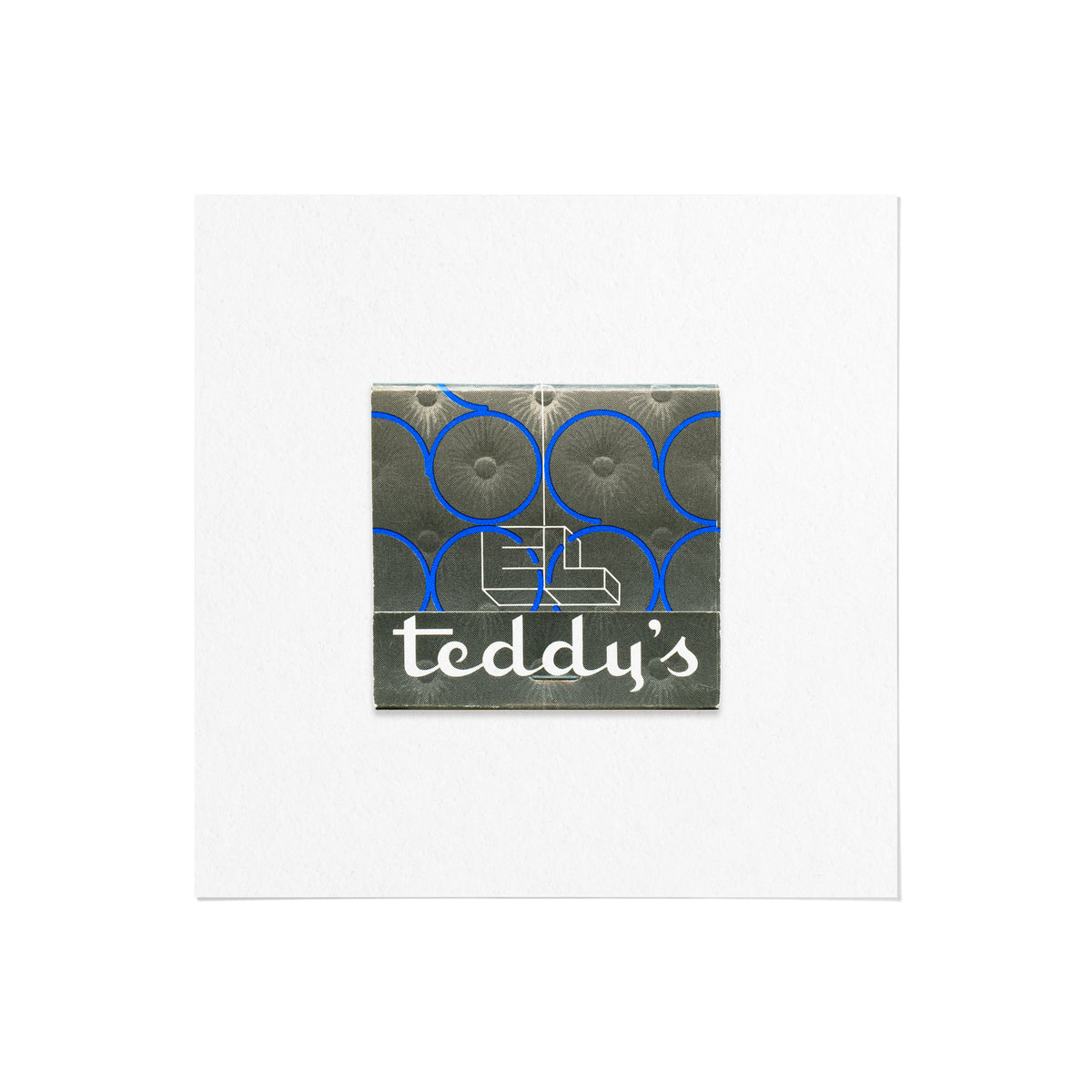 A high-quality art print of a vintage 1970s matchbook from Teddy’s, an Italian restaurant originally located at 219 West Broadway in New York City.