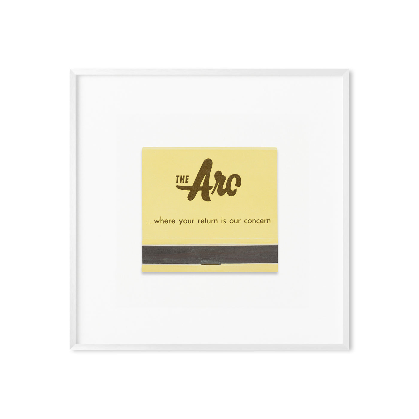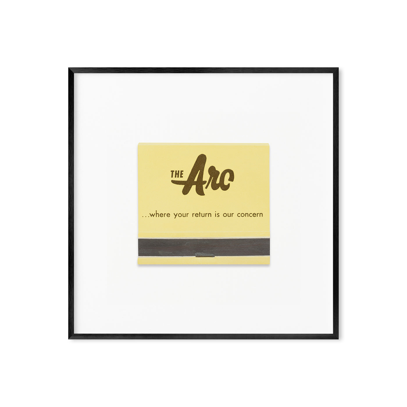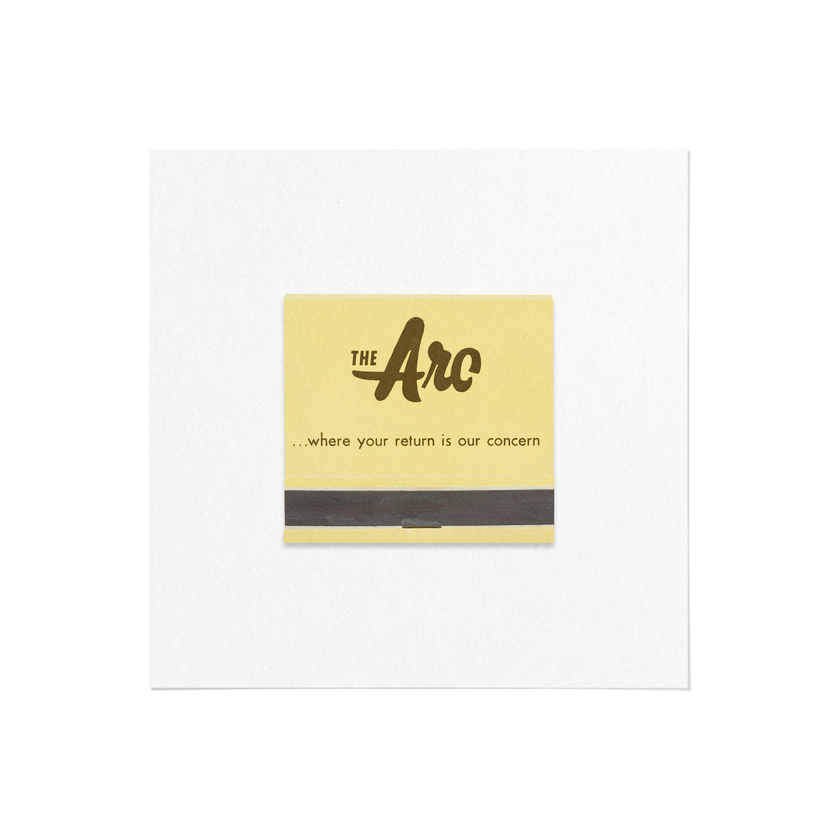 A high-quality art print of a vintage 1960s matchbook from The Arc, a steakhouse and piano bar that operated for over 30 years in Glenview, Illinois.