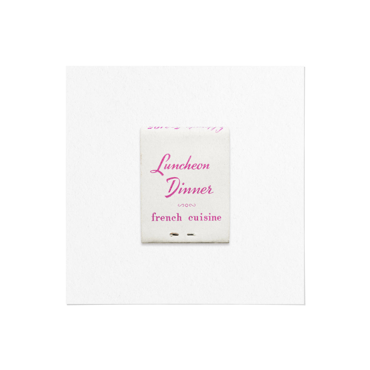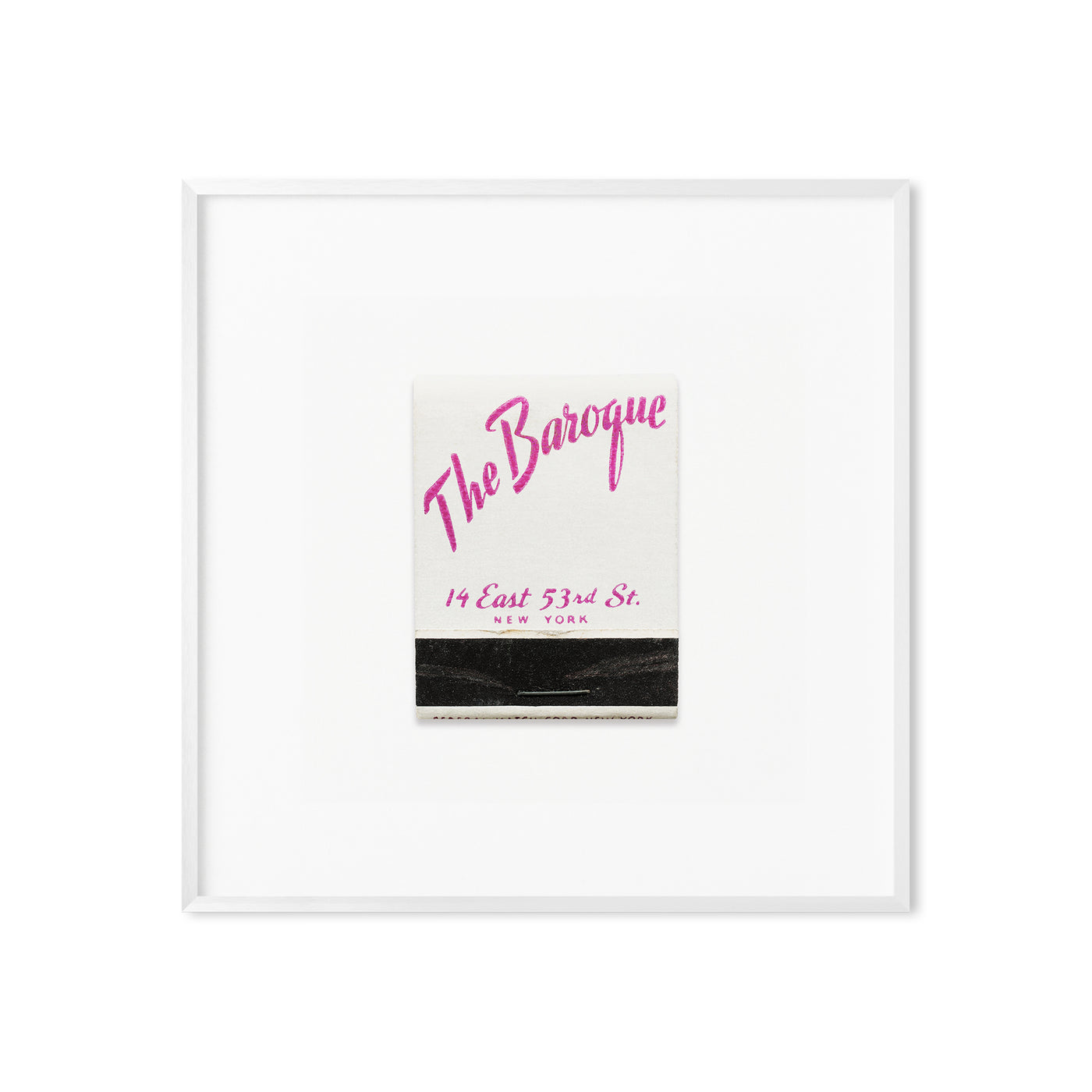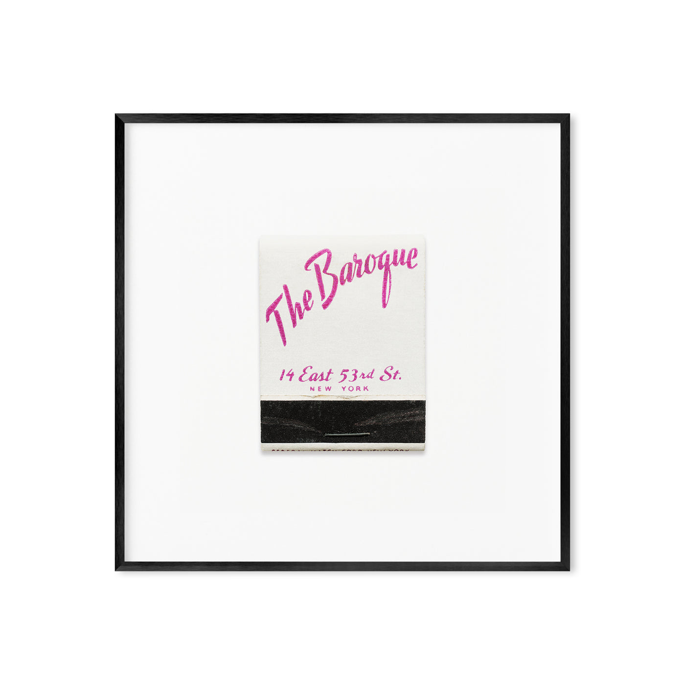 A high-quality art print of a vintage 1940s matchbook from The Baroque, a French restaurant and supper club once located at 14 East 53rd Street in New York City.