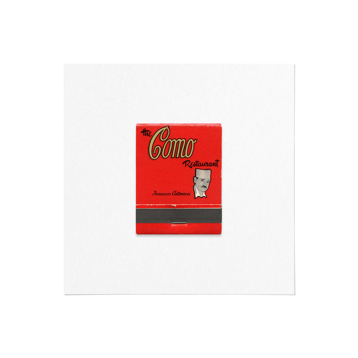 A high-quality art print of a vintage 1960s matchbook from The Como Restaurant & Lounge, a landmark Italian-American restaurant located at 2220 Pine Avenue in Niagara Falls, New York.