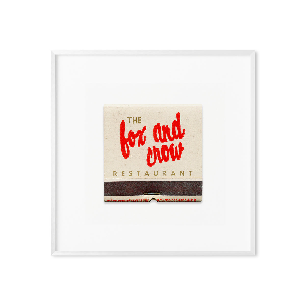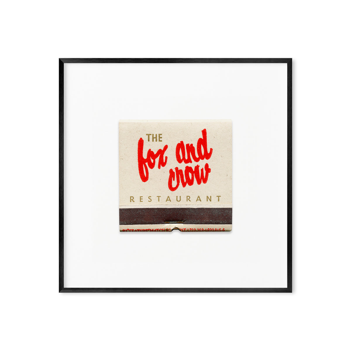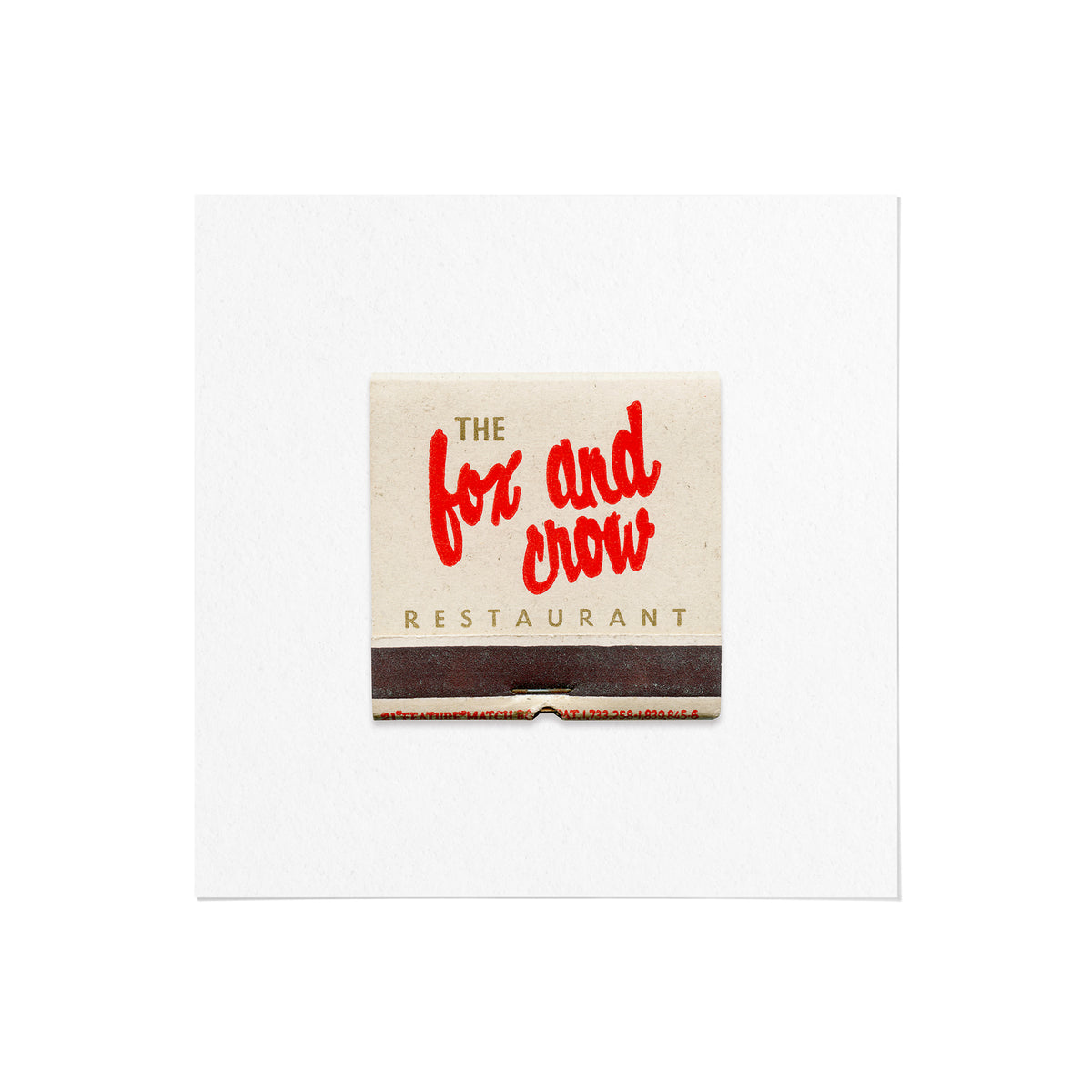 A high quality art print of a vintage 1940s matchbook from The Fox and Crow, a high-society restaurant and supper-club in Montgomery, Ohio, operational from the 1930s through the late 1940s.