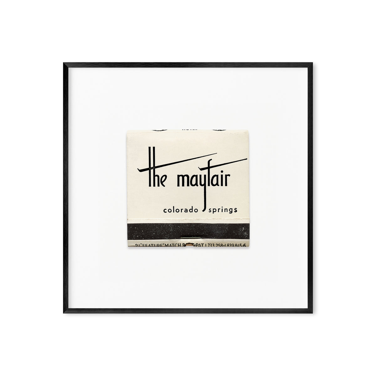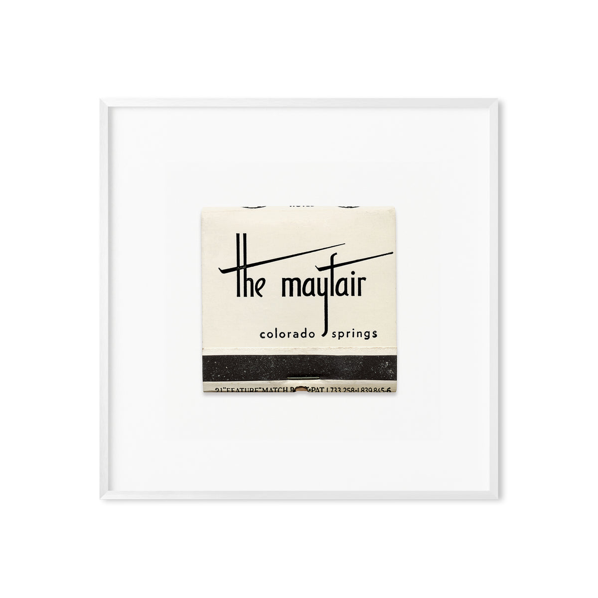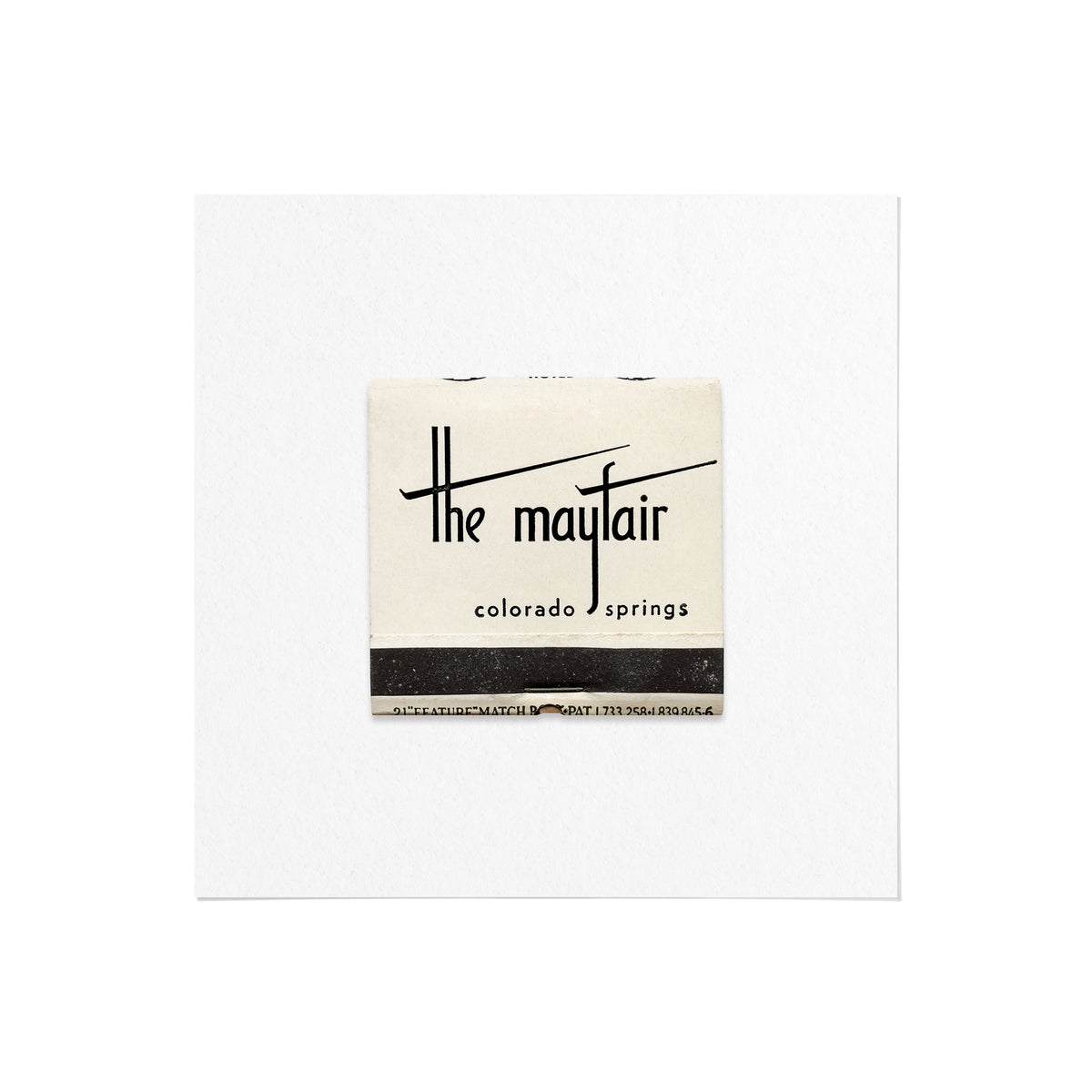 A high-quality art print of a vintage 1950s matchbook from The Mayfair, a hotel once located at 140 E. Platte Avenue in Colorado Springs.