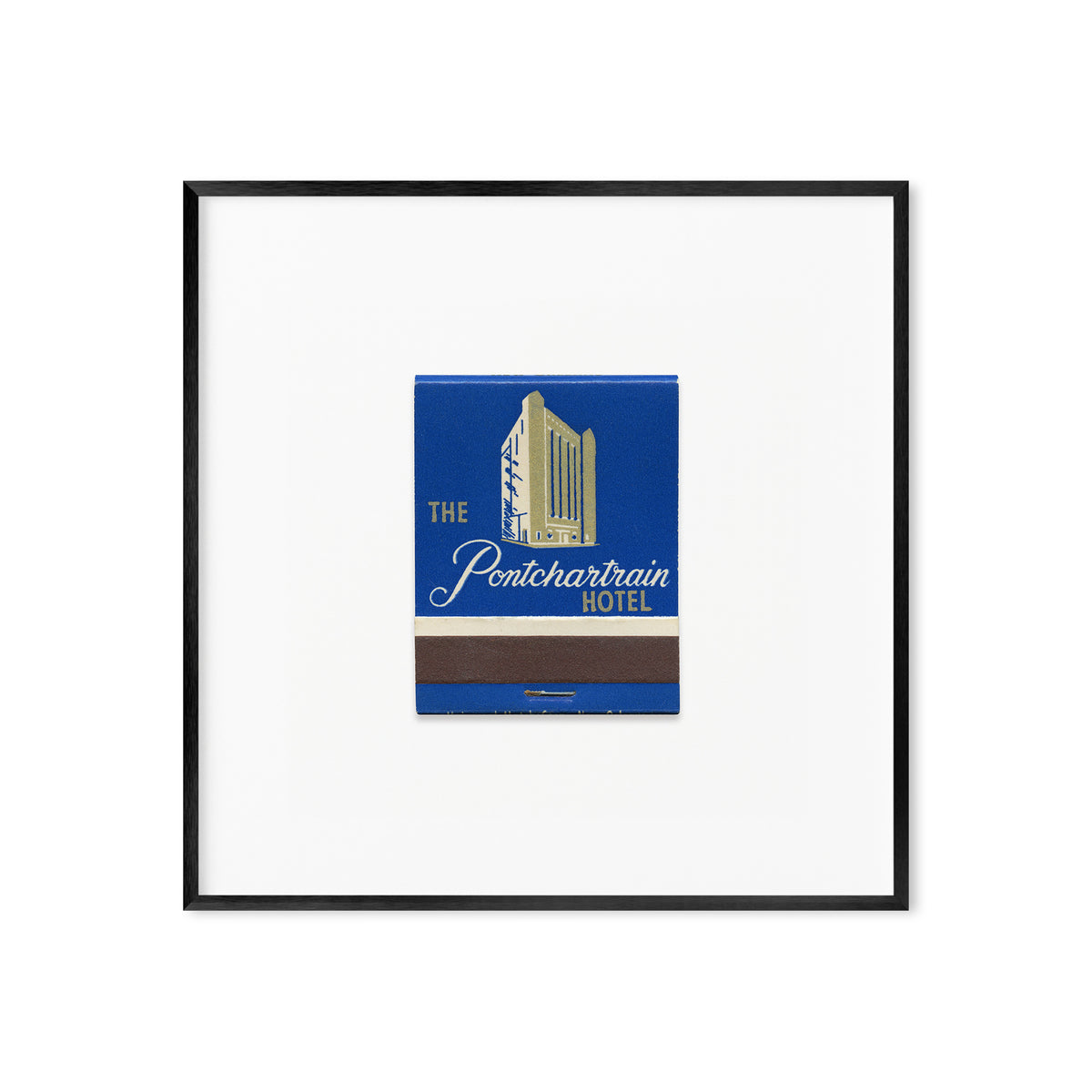 A high-quality art print of a vintage 1950s matchbook from The Pontchartrain Hotel in New Orleans, Louisiana.
