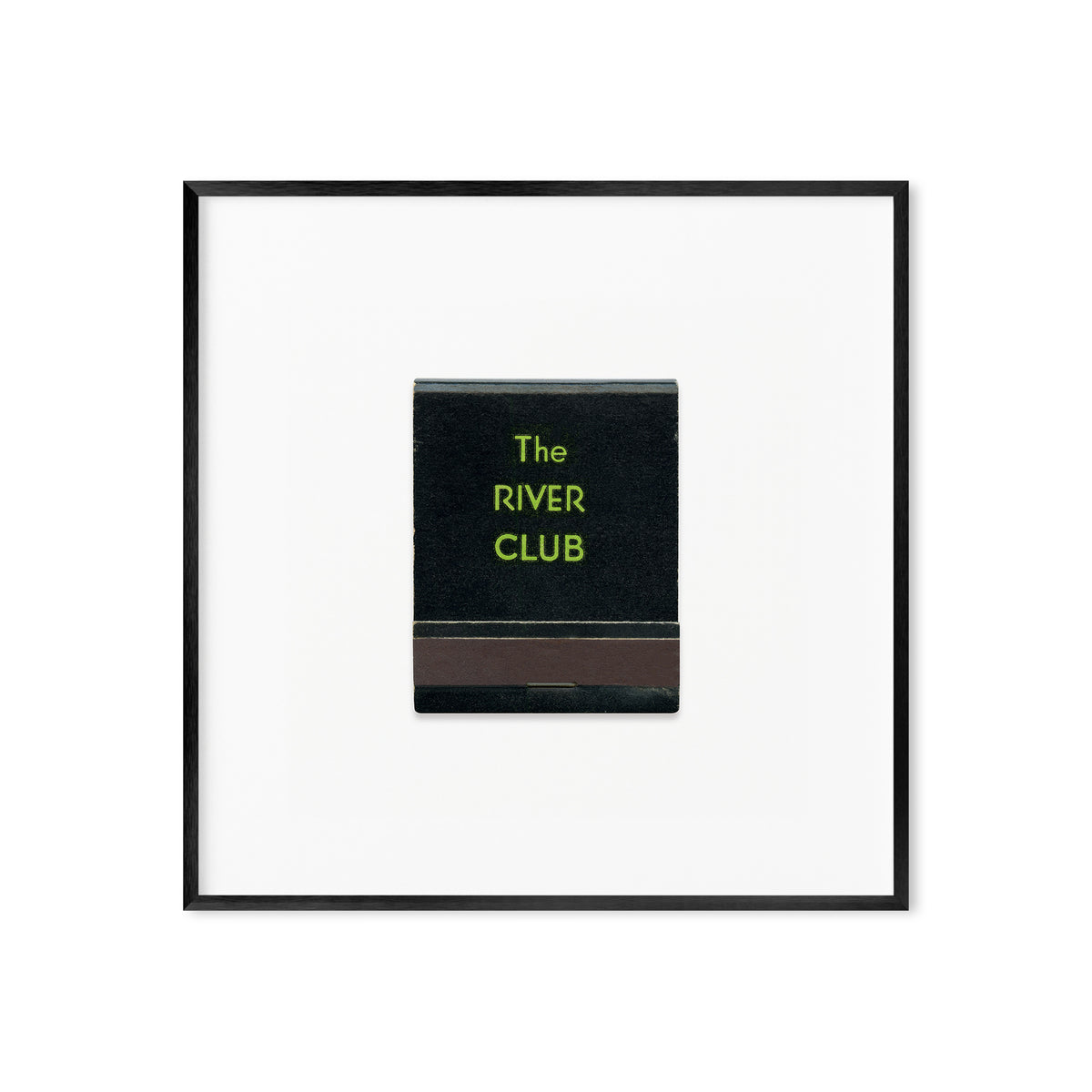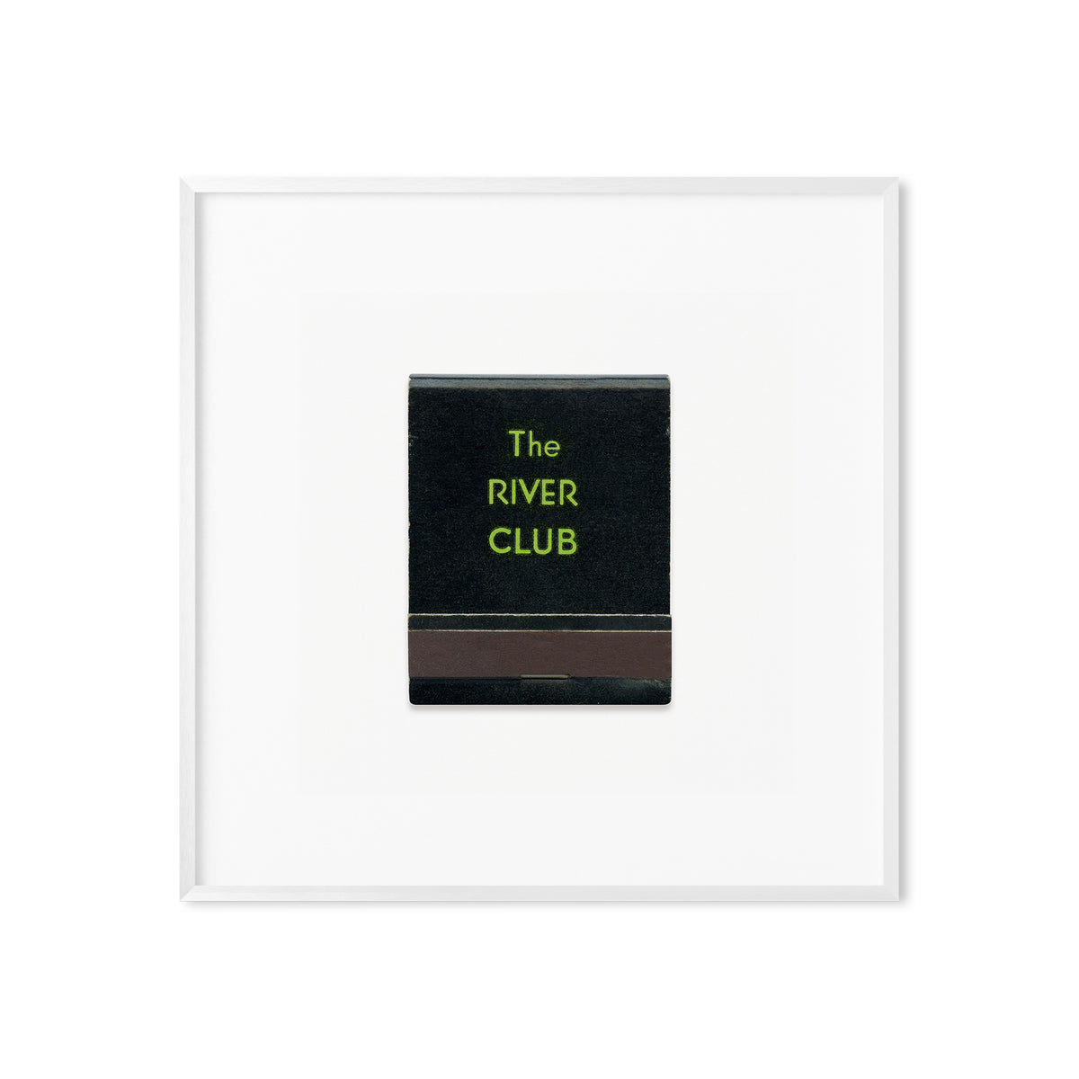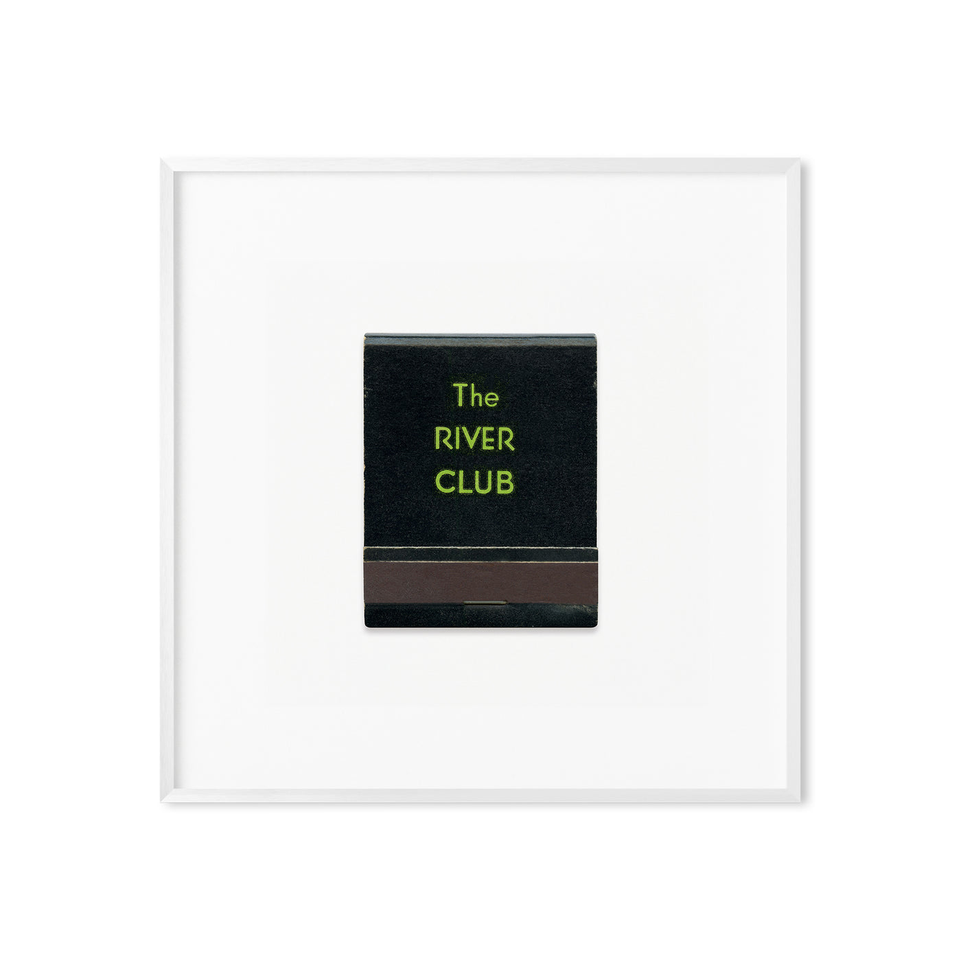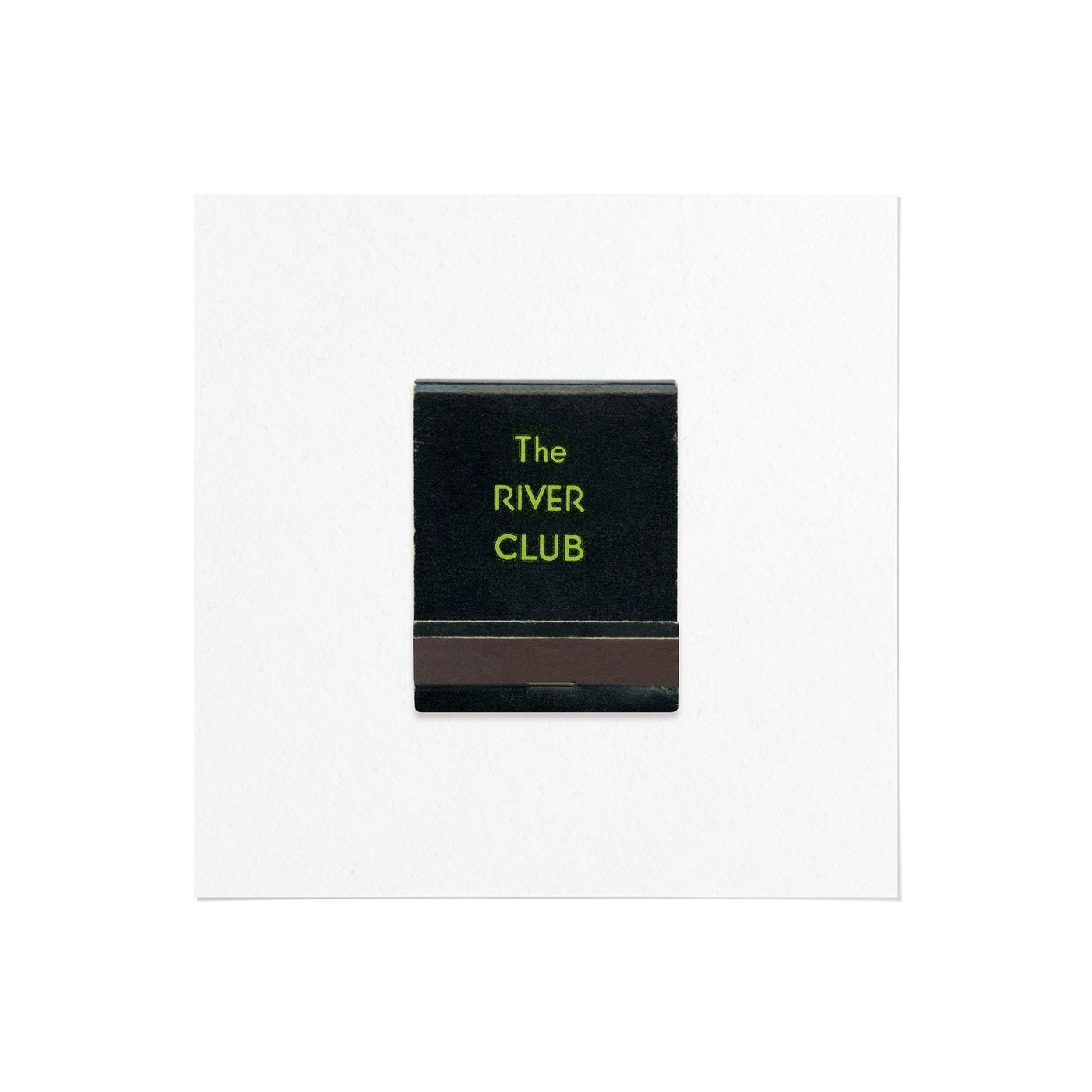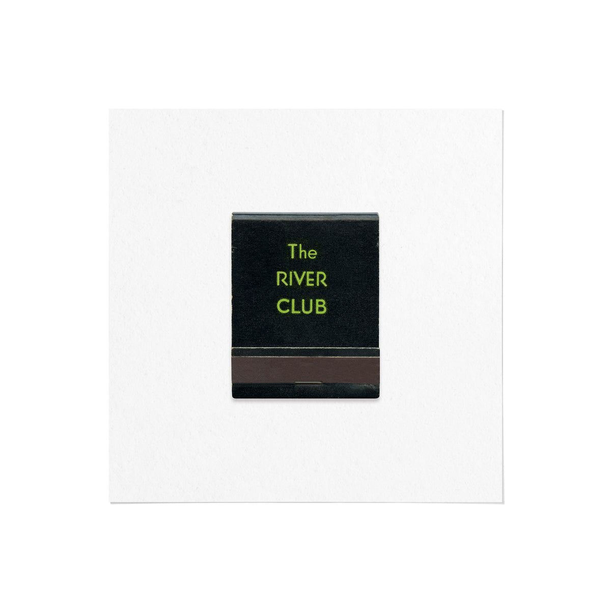 A high-quality art print of a vintage 1950s matchbook from The River Club of New York, an exclusive private club situated at 447 East 52nd Street in New York City.