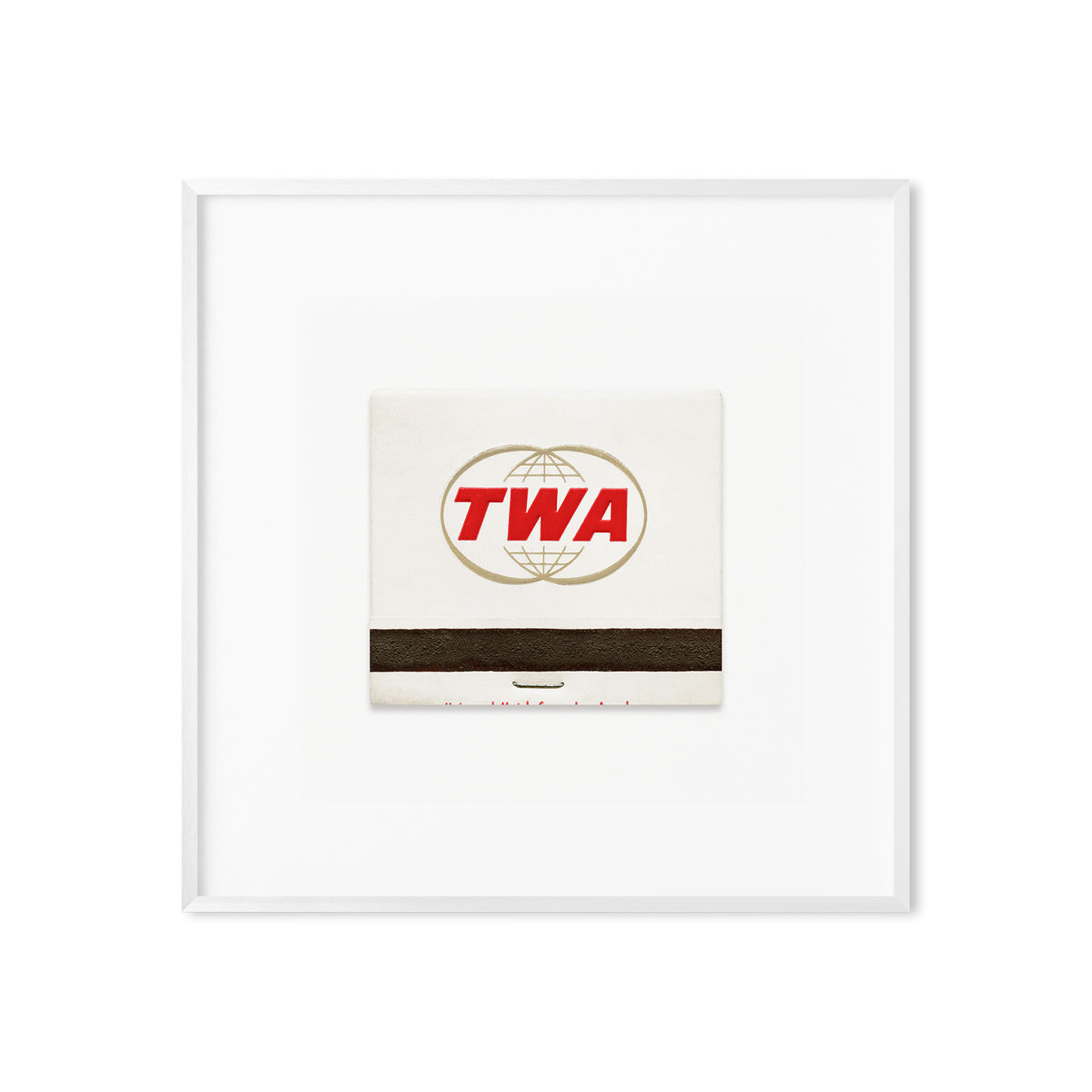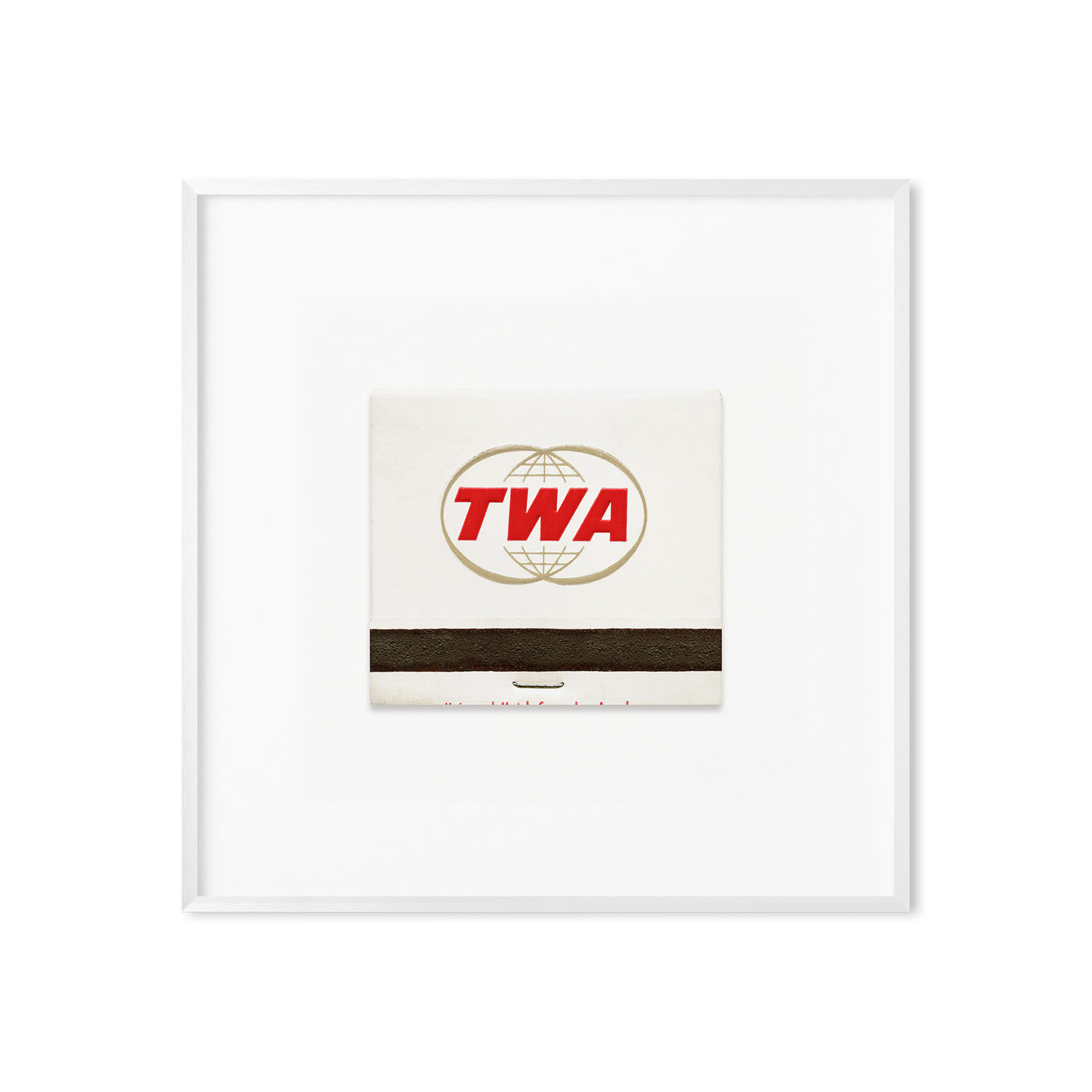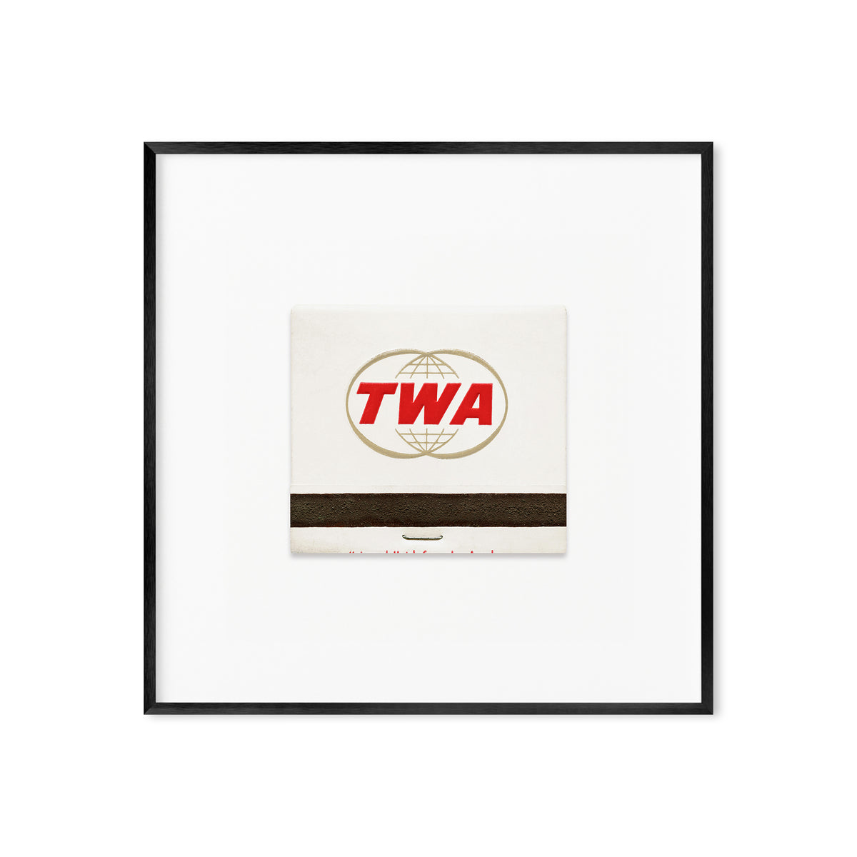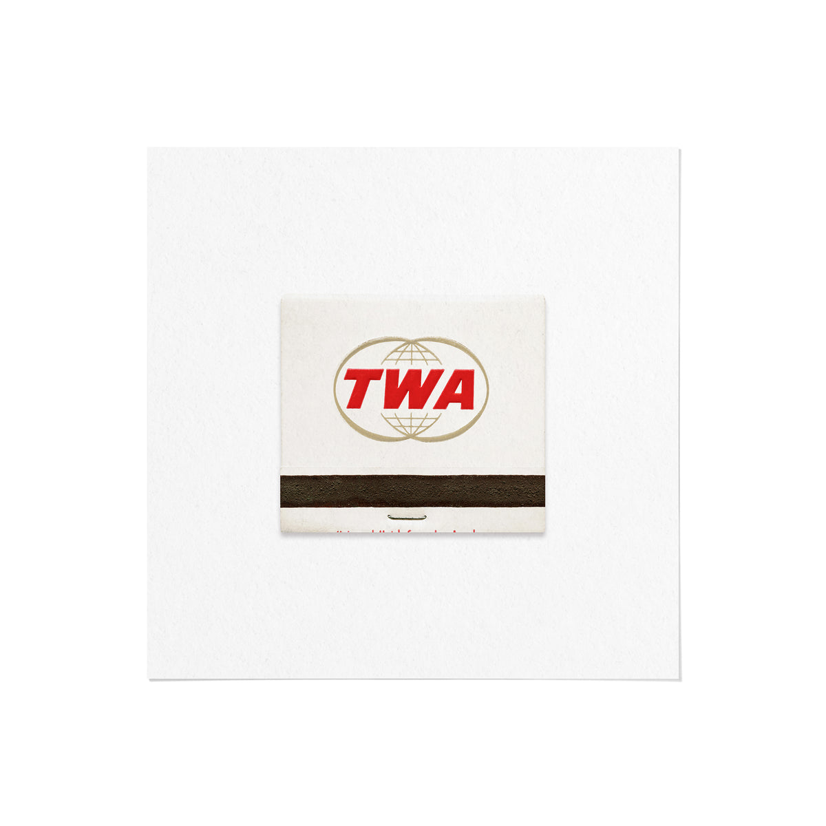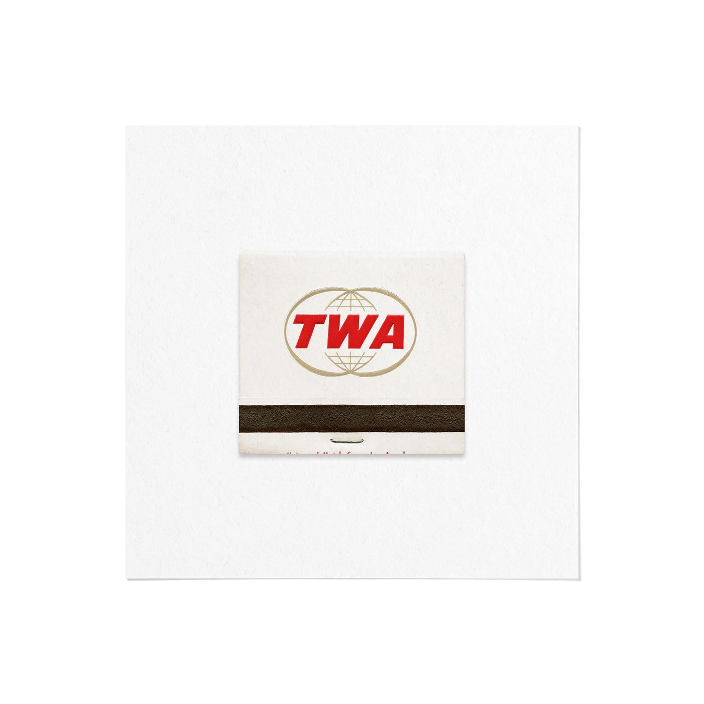 A high-quality art print of a vintage 1960s matchbook from Trans World Airlines (TWA), the iconic airline that epitomized the golden age of air travel.
