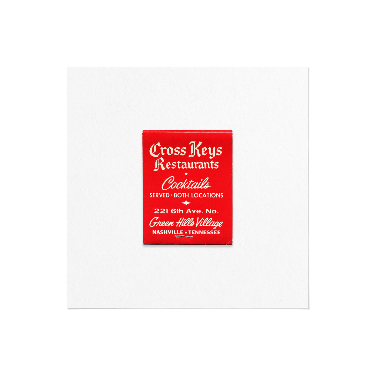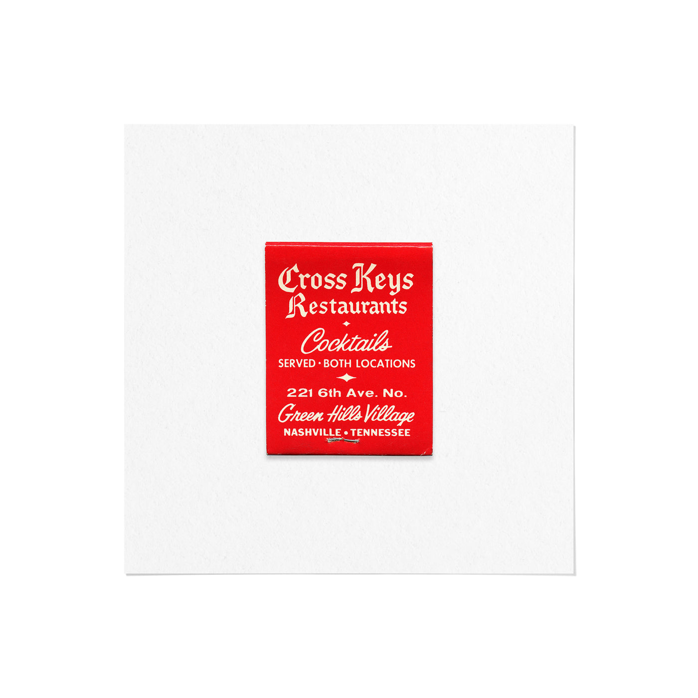 A high-quality art print of a vintage 1950s matchbook from Cross Keys Restaurant, once located in Nashville, Tennessee.