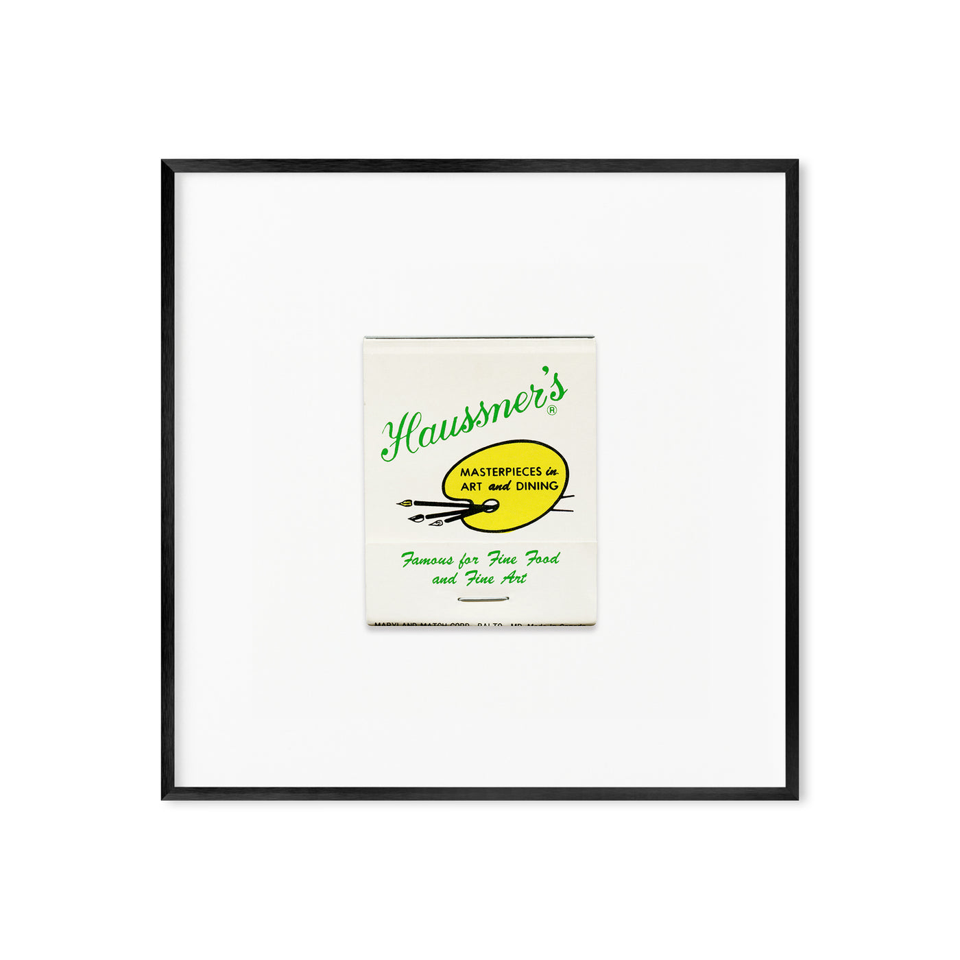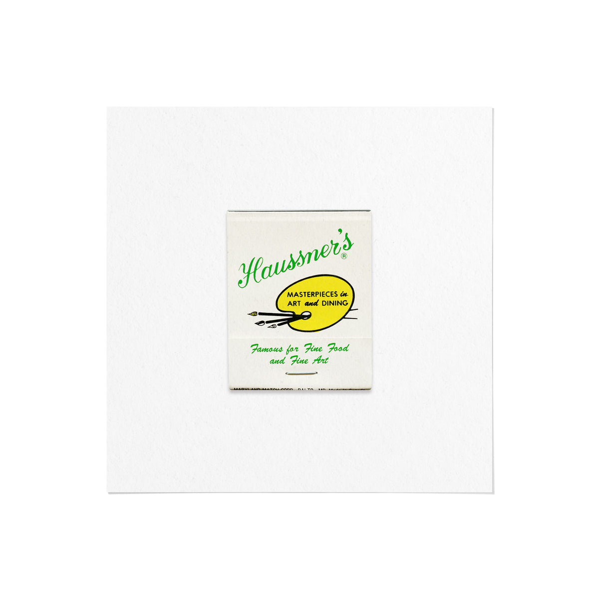 A high-quality art print of a vintage 1970s matchbook from Haussner’s, a Baltimore landmark known for its German American cuisine and renowned private art collection displayed in the restaurant.