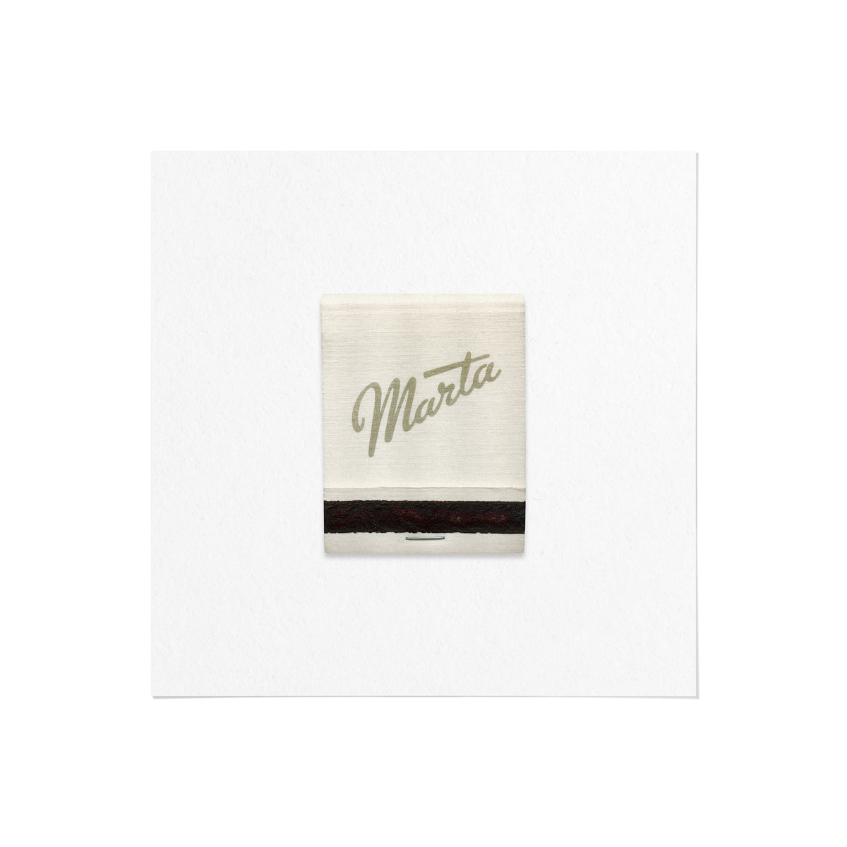 A high-quality art print of a vintage 1960s matchbook from Marta, an Italian restaurant once located at 75 Washington Place in New York City’s Greenwich Village.