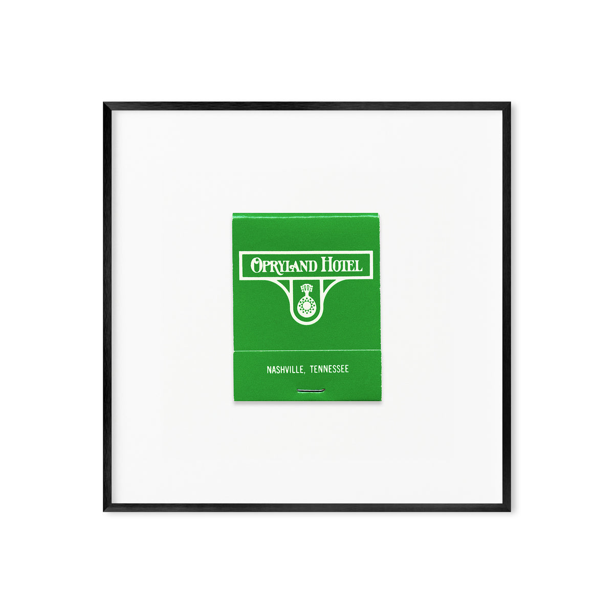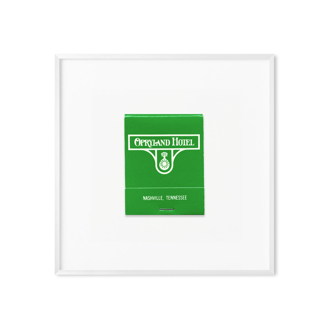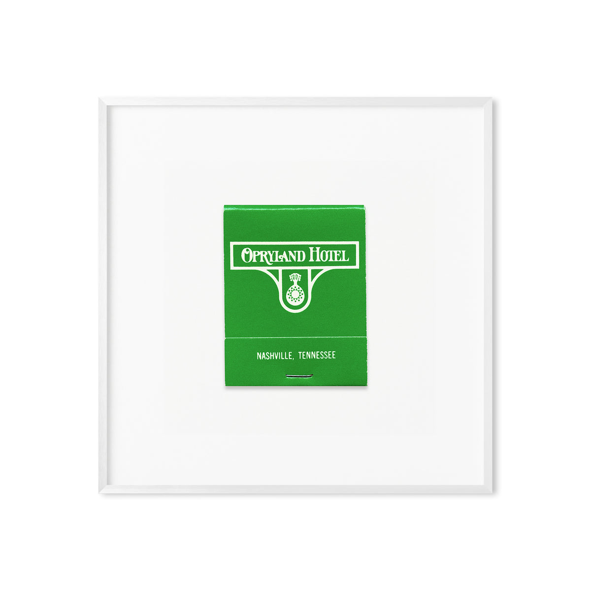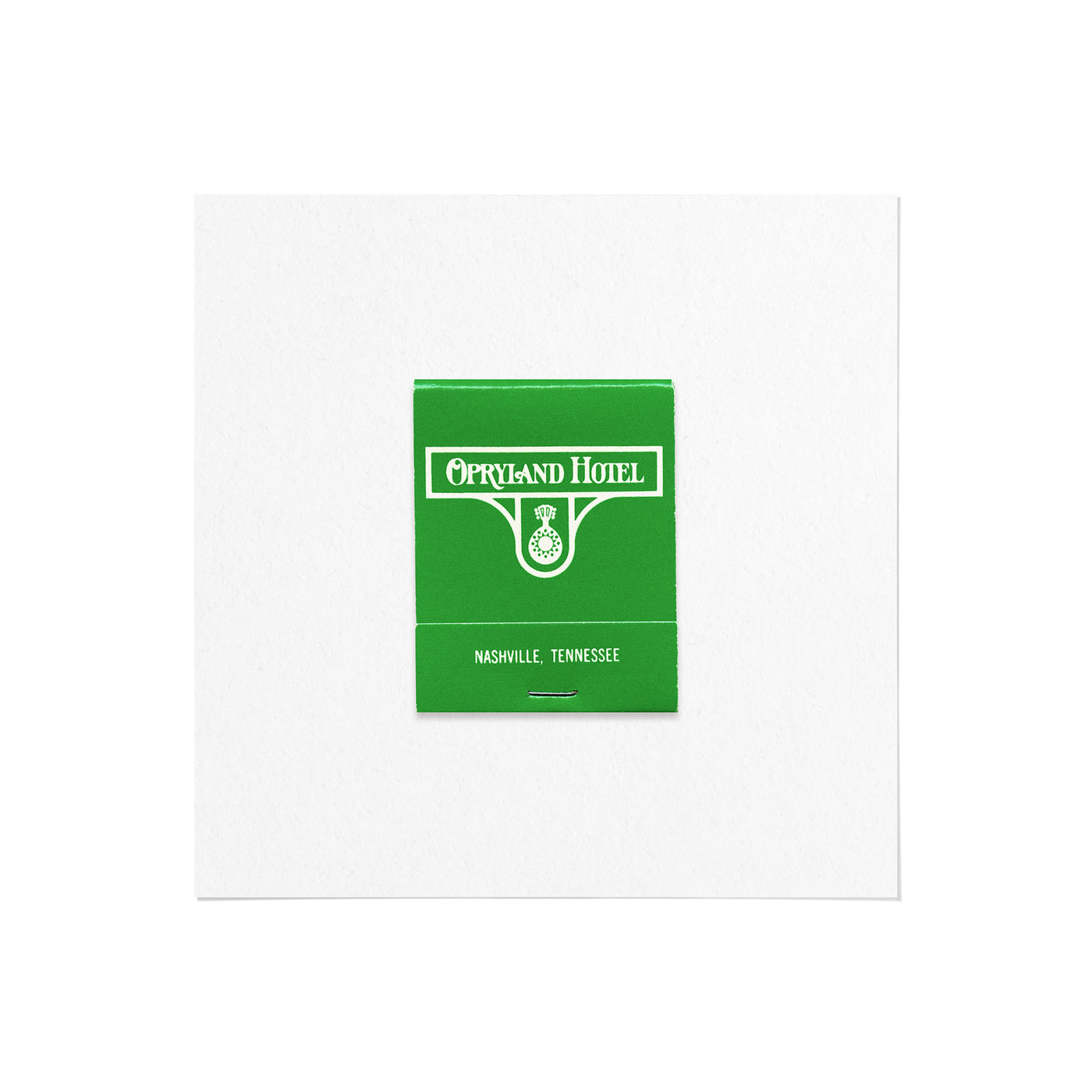 A high-quality art print of a vintage 1980s matchbook from the Opryland Hotel in Nashville, Tennessee, now known as the Gaylord Opryland Resort.