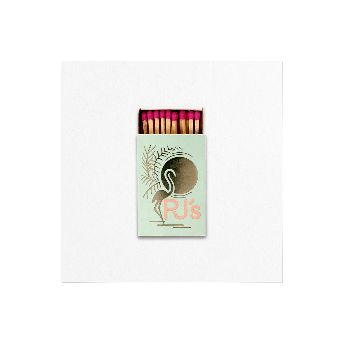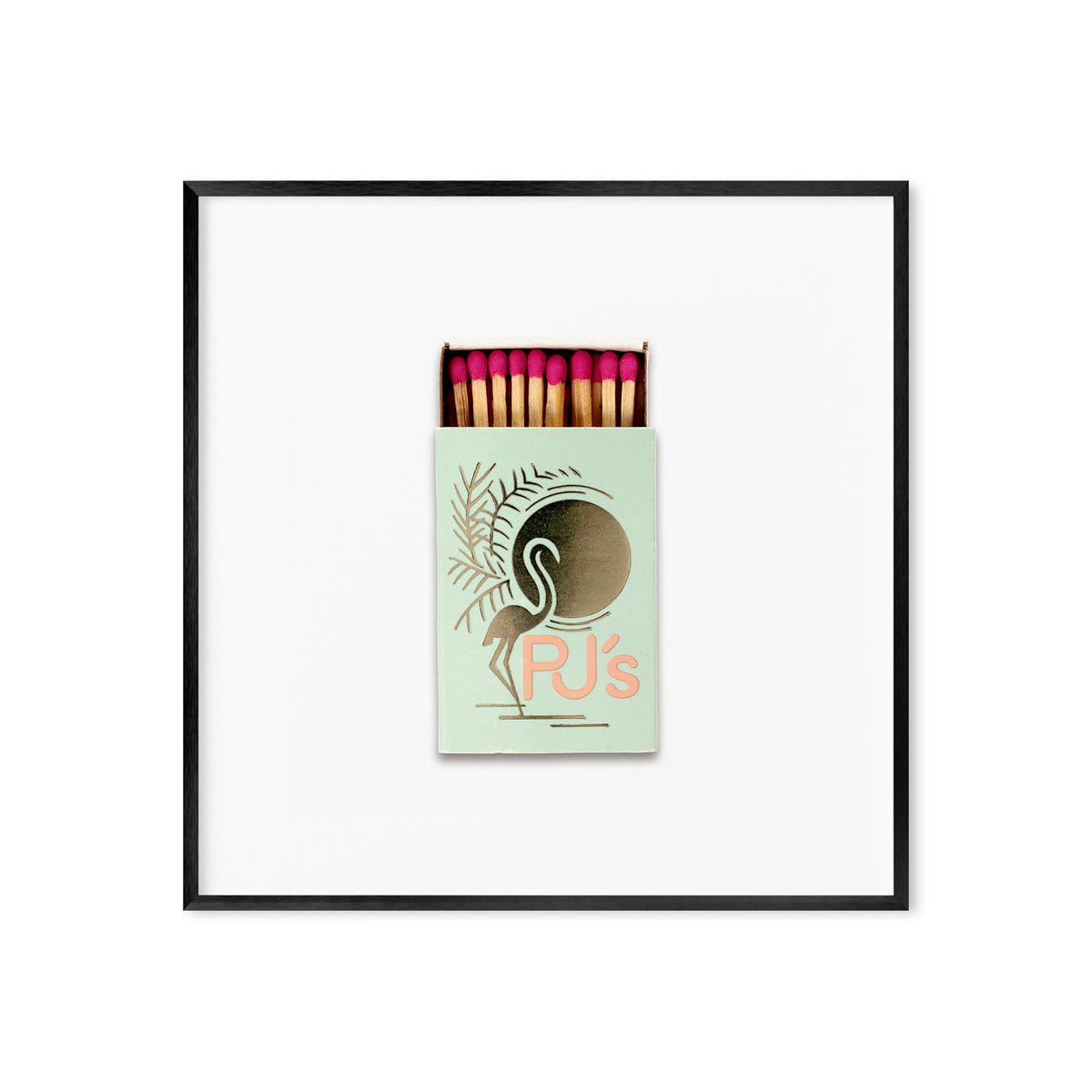 A high-quality art print of a vintage 1970s matchbox from PJ’s, a River Walk restaurant once located in San Antonio, Texas.