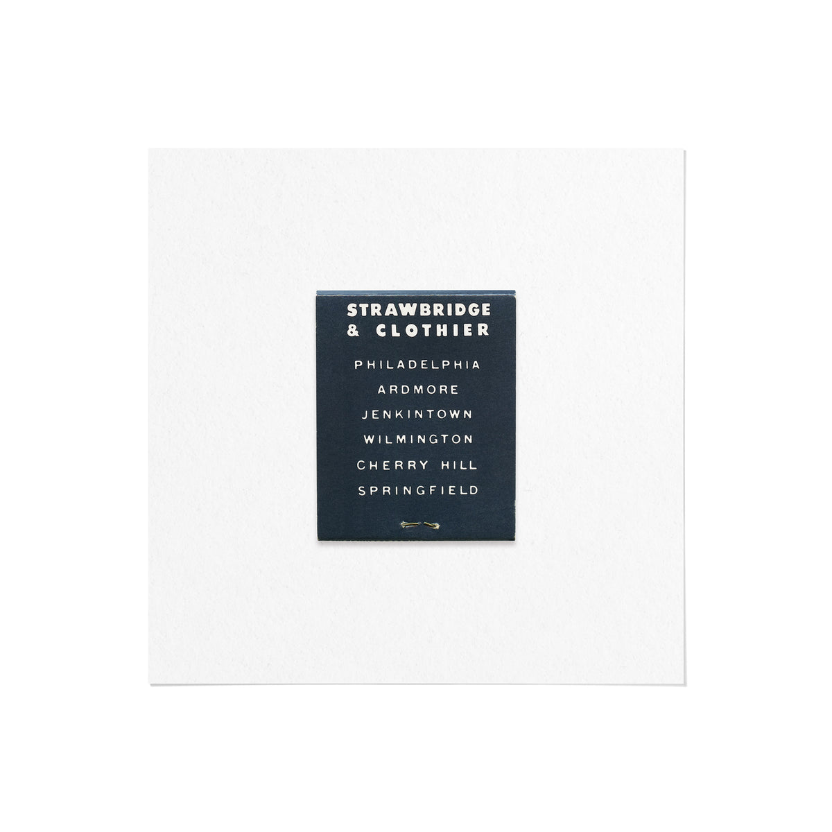 A high-quality art print of a vintage 1950s matchbook from Strawbridge & Clothier, a department store chain once based in Philadelphia, Pennsylvania.