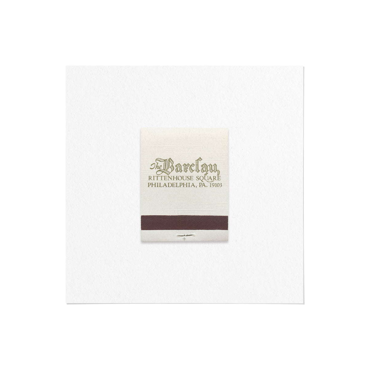 A high-quality art print of a vintage 1970s matchbook from The Barclay, a prestigious hotel once located in Rittenhouse Square in Philadelphia, Pennsylvania.