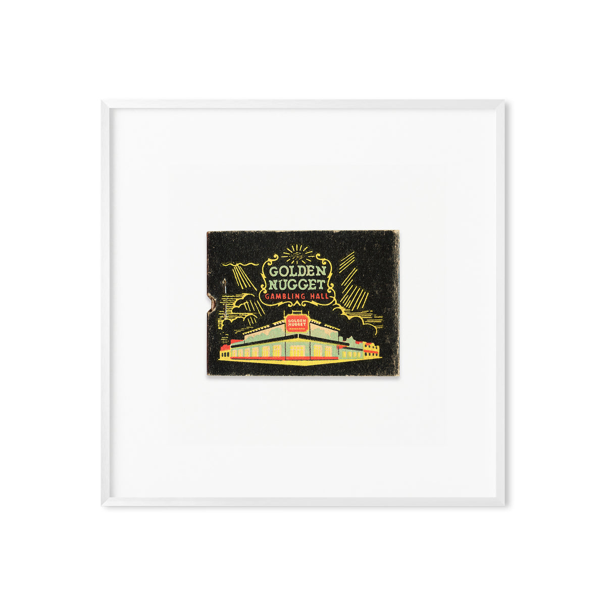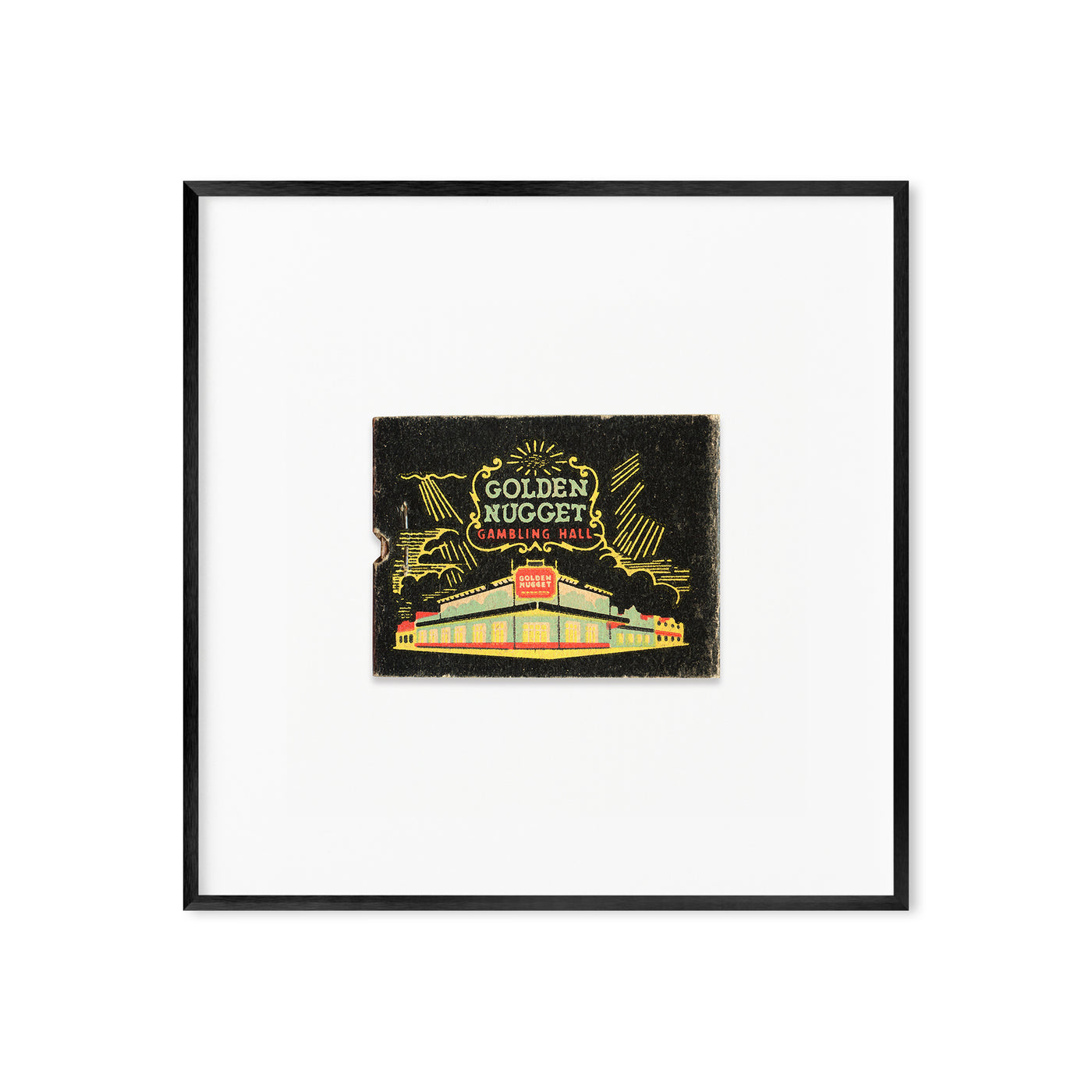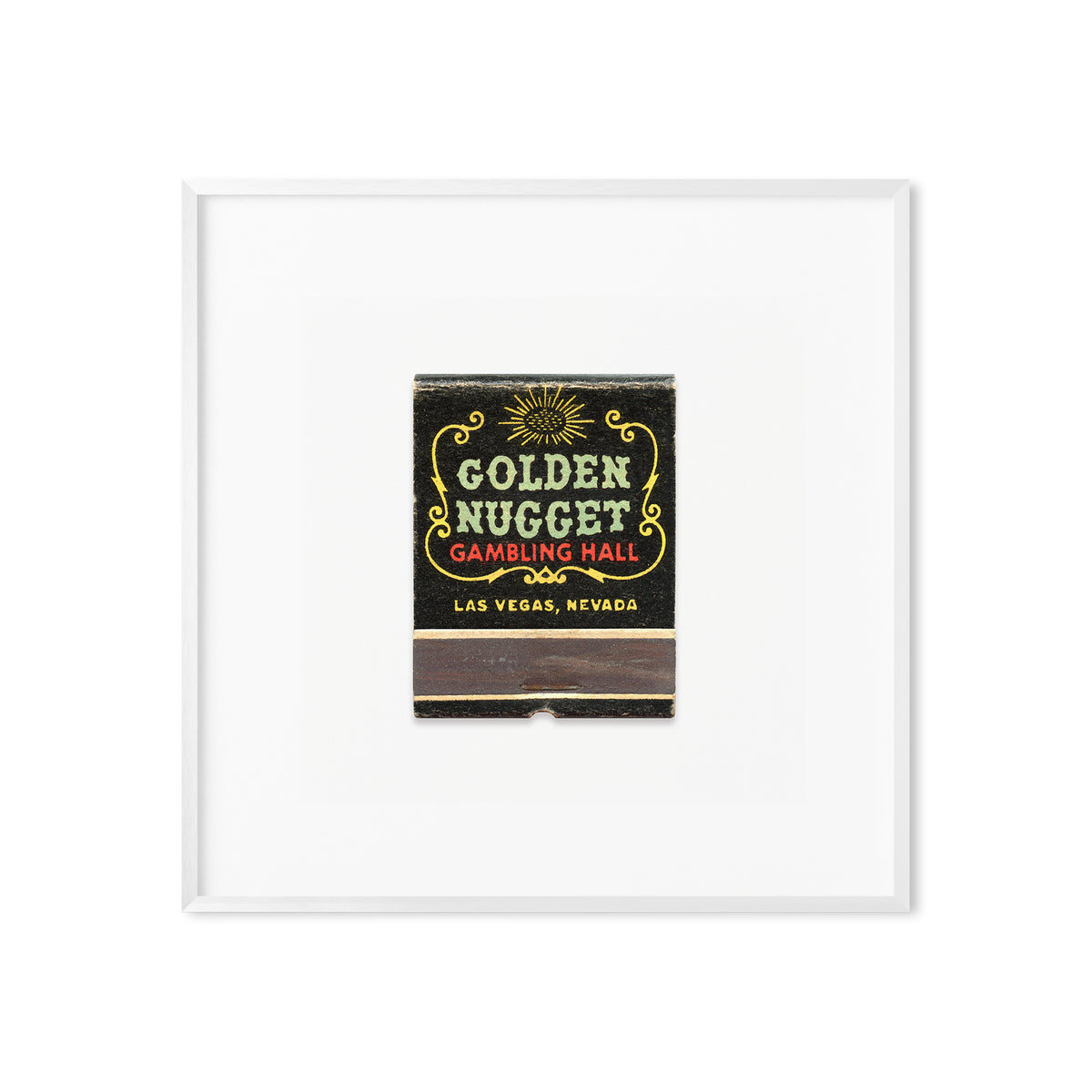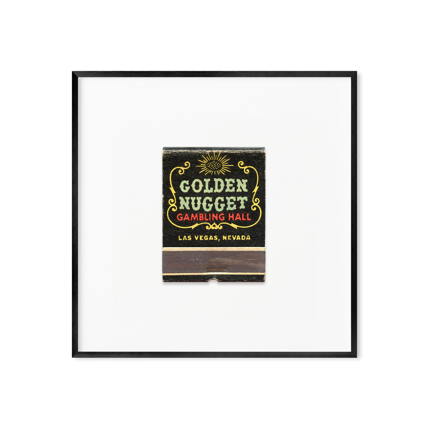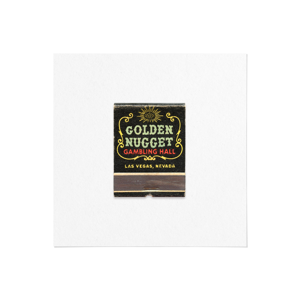 A high-quality art print of a vintage 1940s matchbook from the Golden Nugget Gambling Hall in Las Vegas, Nevada.
